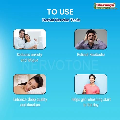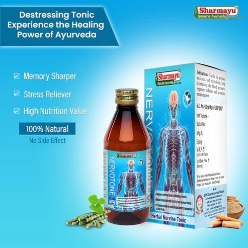 Sharmayu Nervotone Herbal Nervine Tonic is a trusted Ayurvedic formulation designed to support brain and nervous system health. It is enriched with powerful herbal ingredients that help maintain normal brain-stimulation levels modulate brain activity and support energy balance. Nervotone promotes healthy blood circulation and assists the brain's natural neurotransmitter functions making it ideal for those experiencing nervous weakness or mental fatigue. This tonic also helps neutralize damaging free radicals in the body further supporting cognitive and nervous health. Recommended for adults and children alike Nervotone offers a natural herbal alternative for maintaining mental sharpness and vitality.