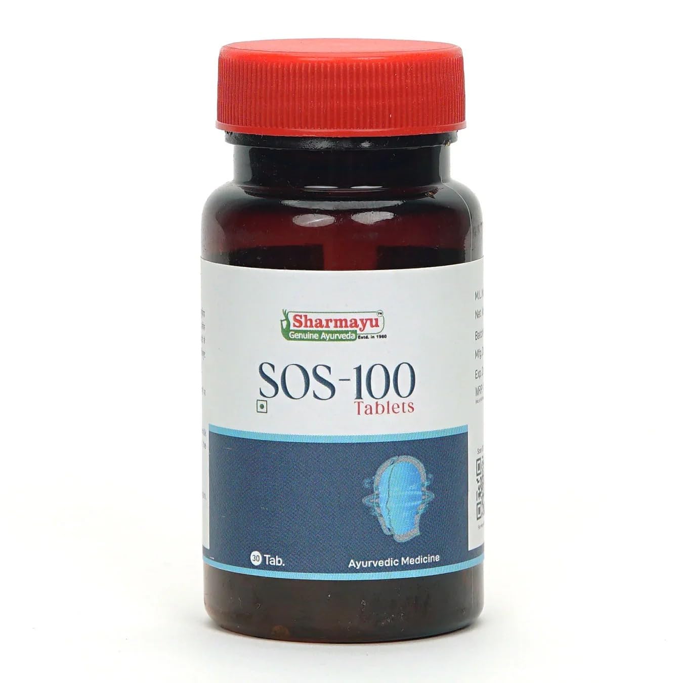 Sharmayu SOS-100 Tablets are a powerful Ayurvedic formulation designed to provide quick and effective relief from headaches migraines stress and related discomforts. Made with authentic and time-tested Ayurvedic herbs these tablets are safe natural and non-addictive supporting overall mental clarity and neurological health. Developed by Sharmayu a trusted Ayurvedic brand since 1940 the SOS-100 blend works to calm the nervous system enhance mental relaxation and reduce episodes of stress-induced pain. These tablets are especially beneficial for individuals experiencing frequent headaches stress from overwork or migraines triggered by lifestyle factors. The product contains 30 easy-to-consume tablets ensuring convenience and consistent dosage. Free from harmful chemicals or synthetic ingredients it is ideal for long-term use as part of a wellness routine.