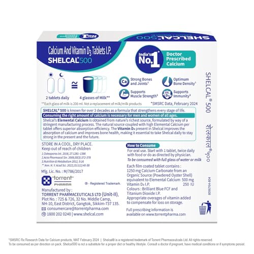 Composition: Each Film Coated Tablet Contains: 1250 Mg Calcium Carbonate From An Organic Source (Powered Oyster Shell) Equivalent To Elemental Calcium 500 Mg. Vitamin D3 Ip 250 Iu.