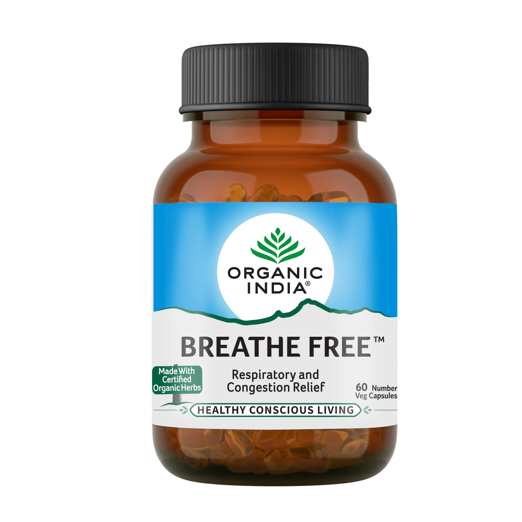 Breathe Free Capsule made from Pushkarmool root Krishna tulasi leaf Vibhitaki fruit and Pippali fruit.