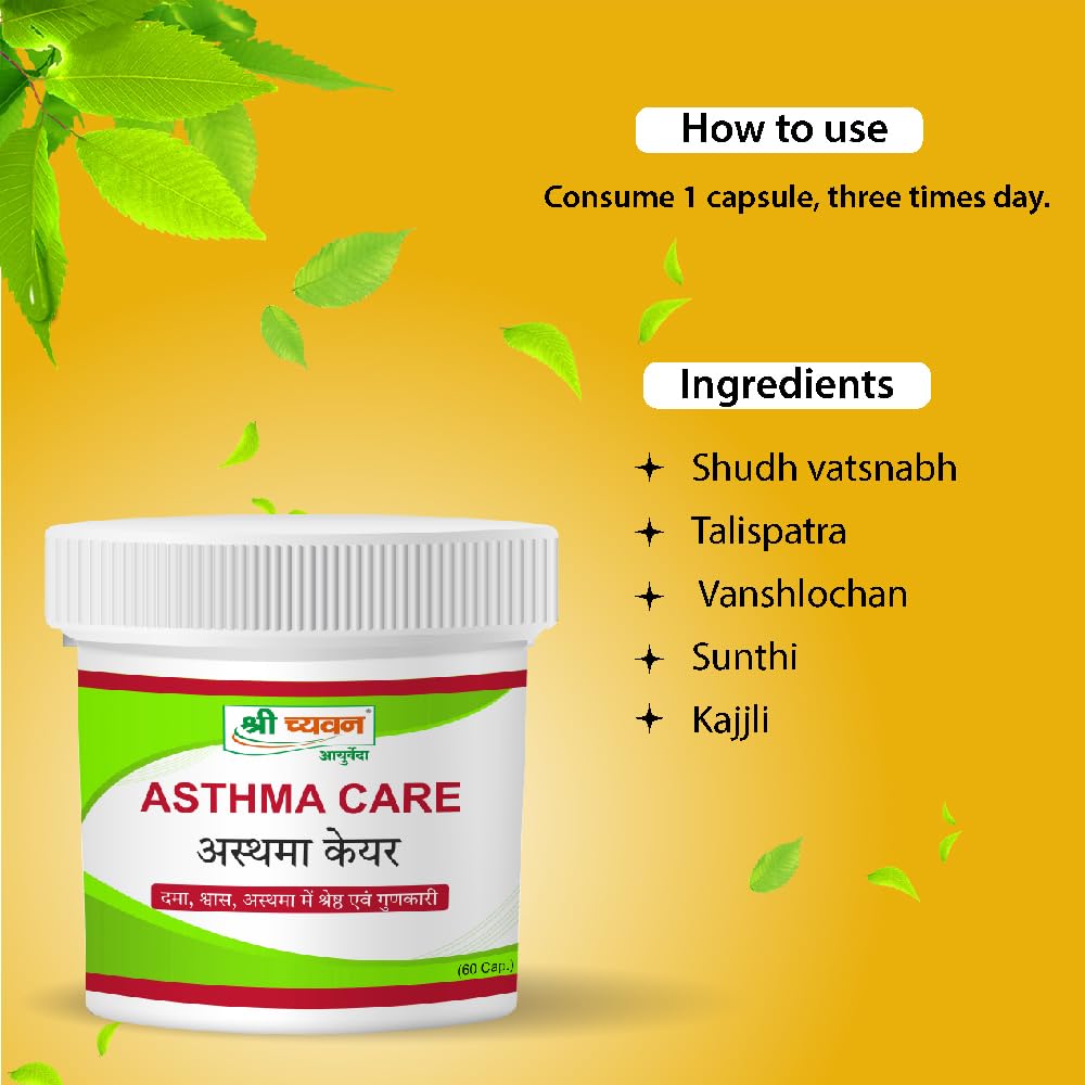 Shri Chyawan Asthma Care Capsule -60 Capsule |Relief from short breath problem|Promotes Lung Wellness|