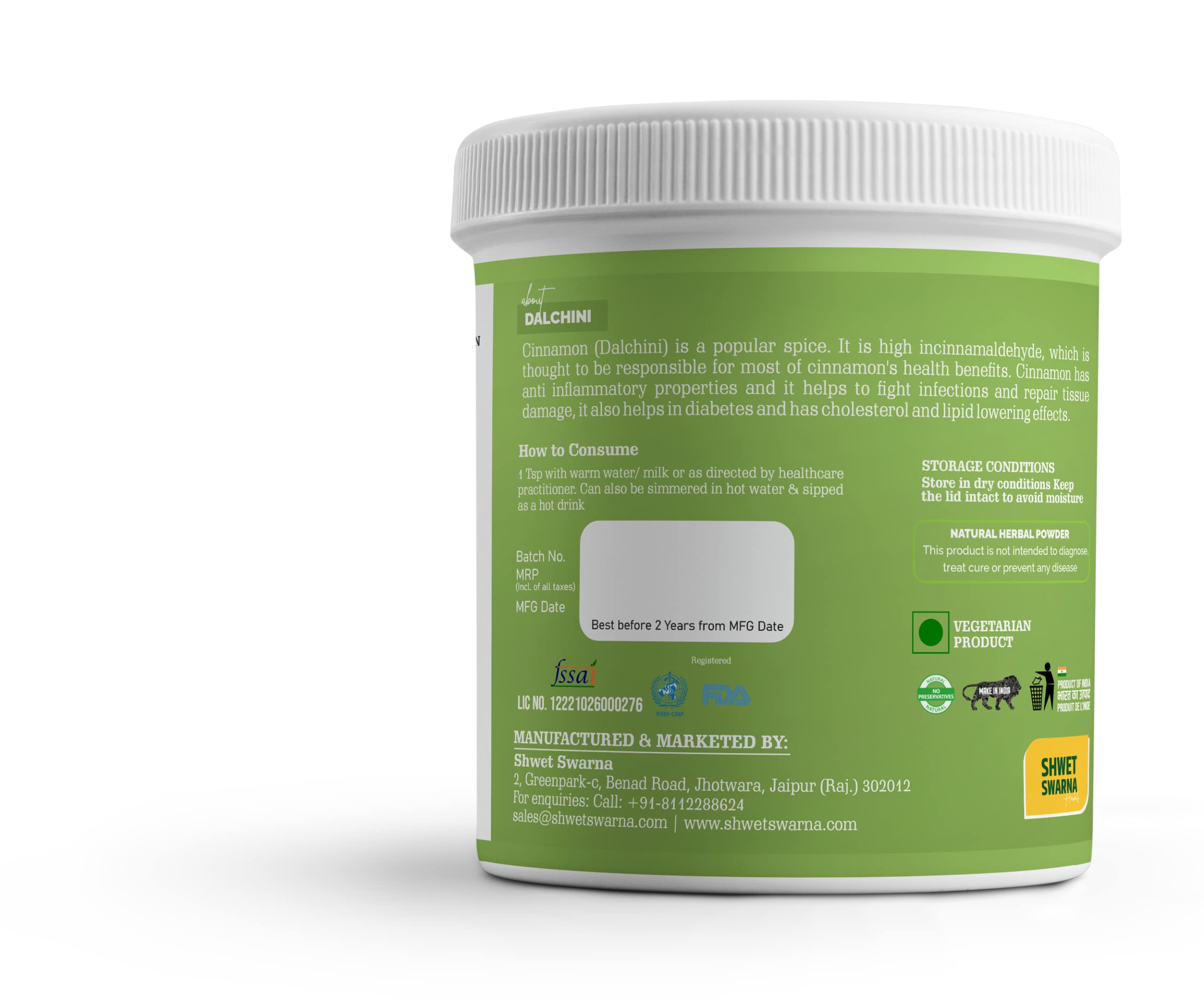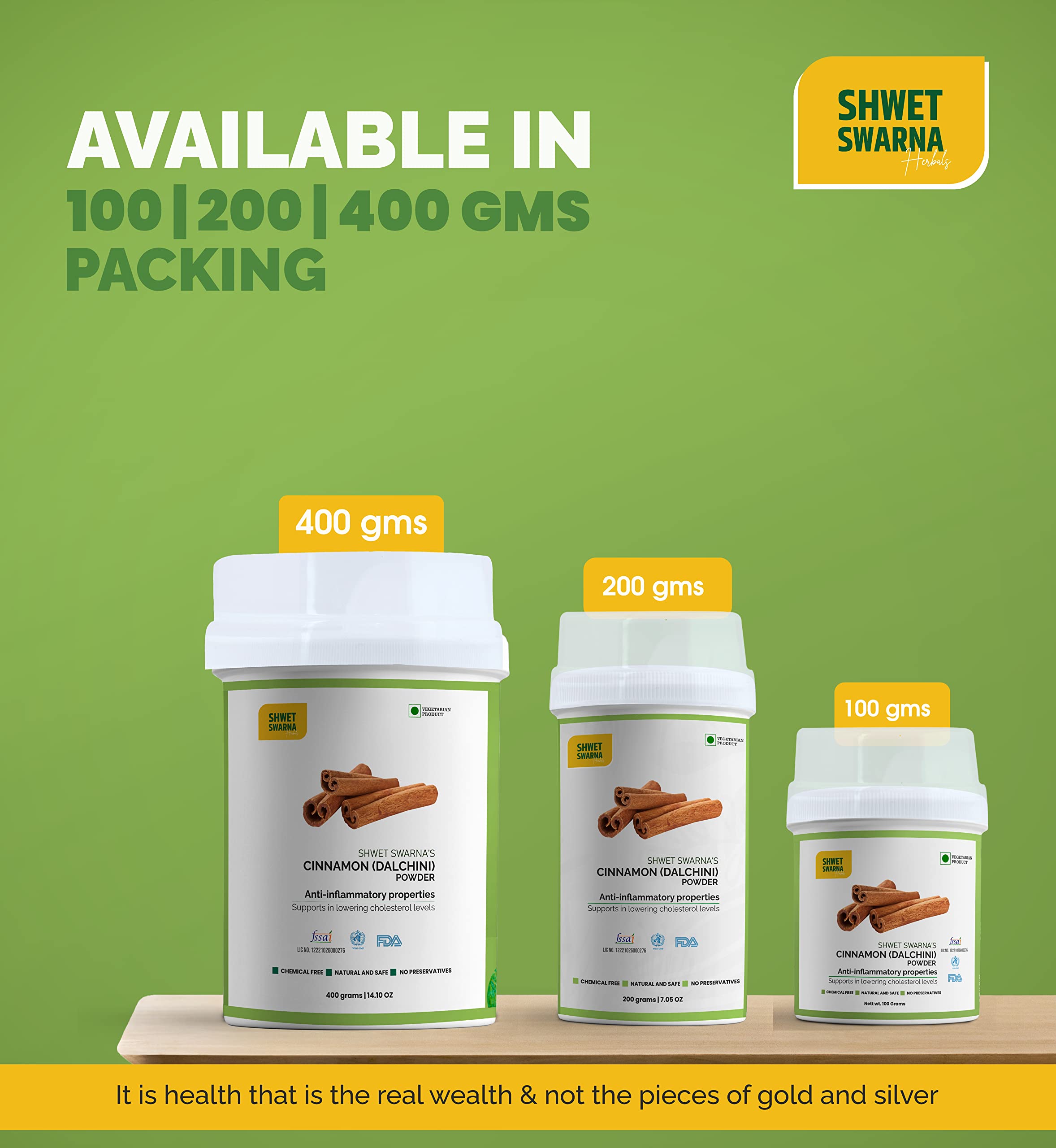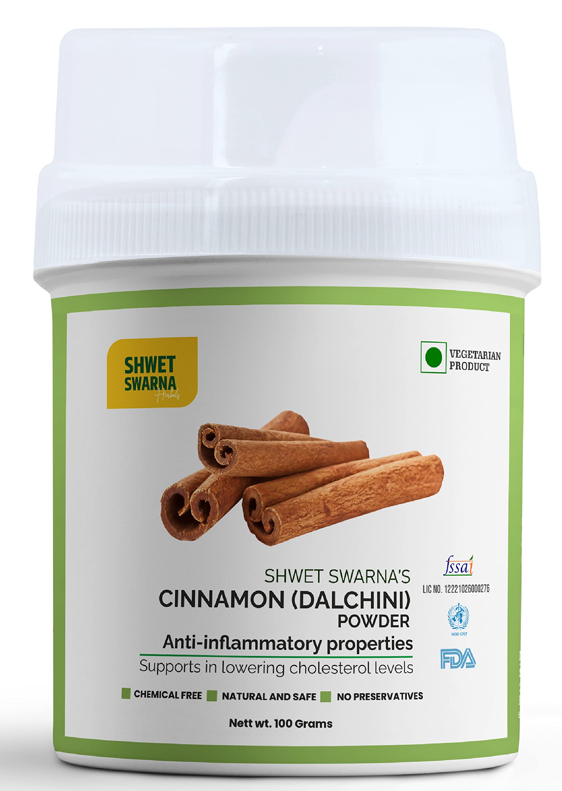 SHWET SWARNA DALCHINI Powder Cinnamon Sticks Powder Add Aroma To Dishes Tea Toast Soup Etc Rich In Fibre And manganese vitamins and minerals Fights Infection100 grm