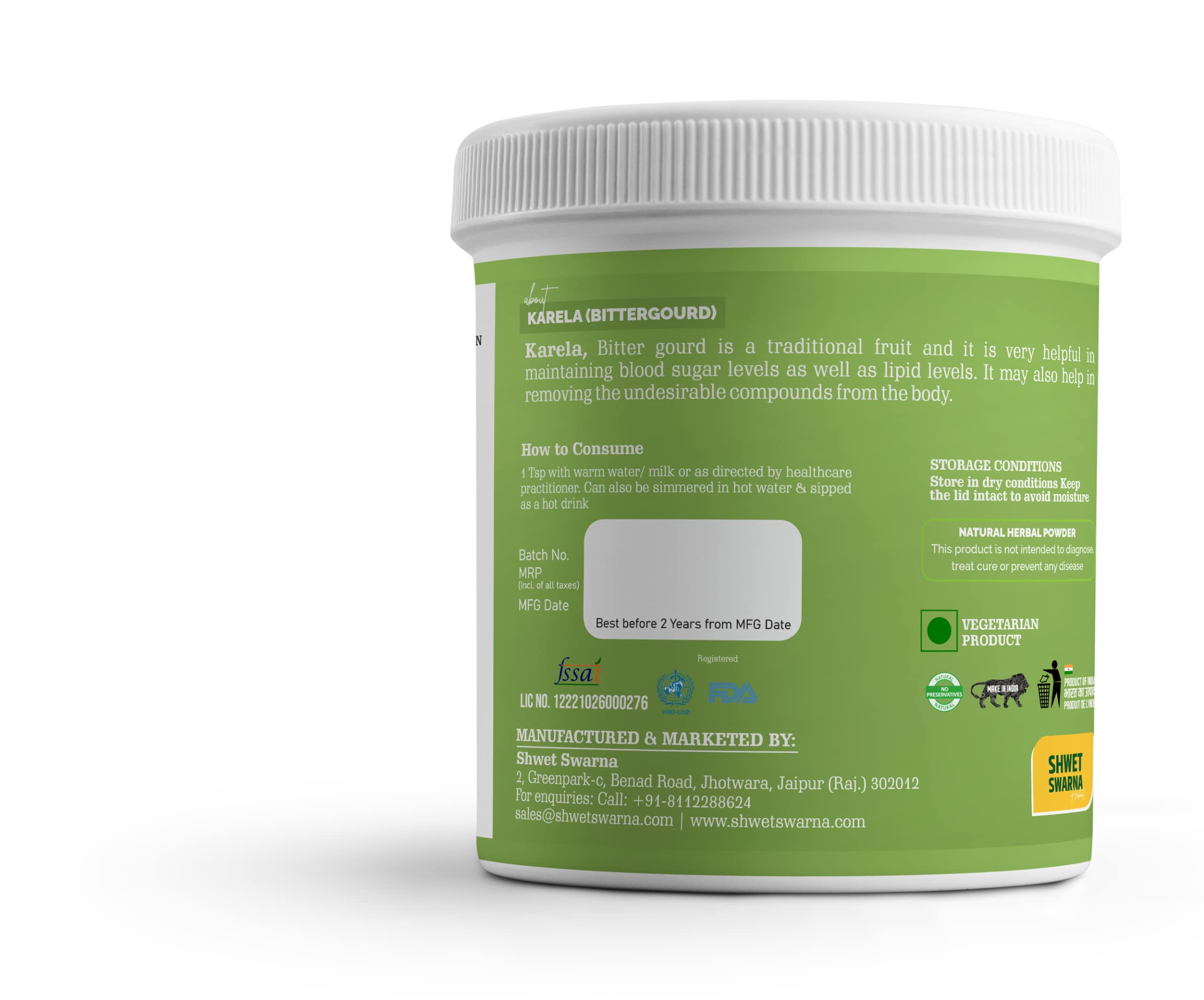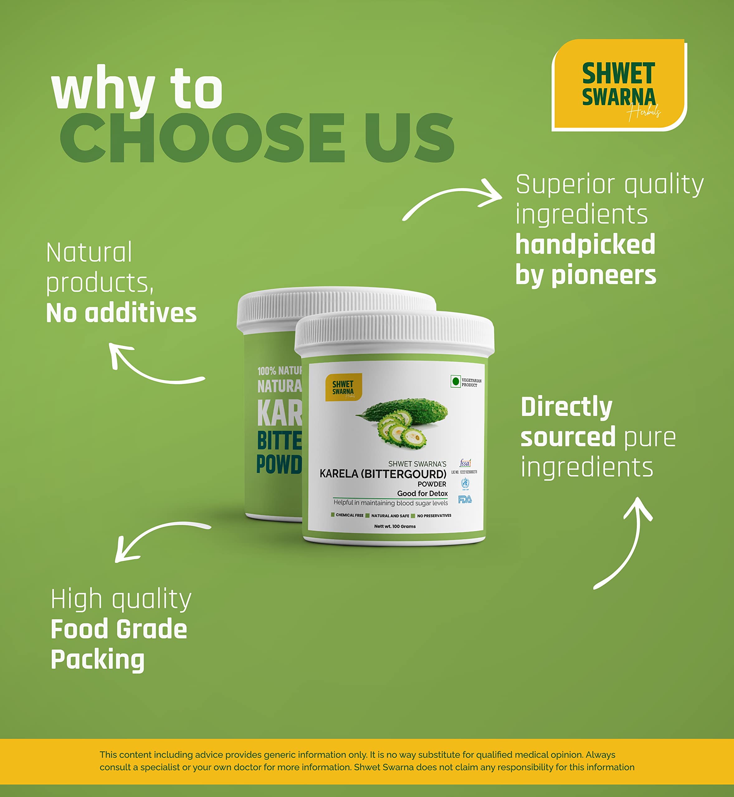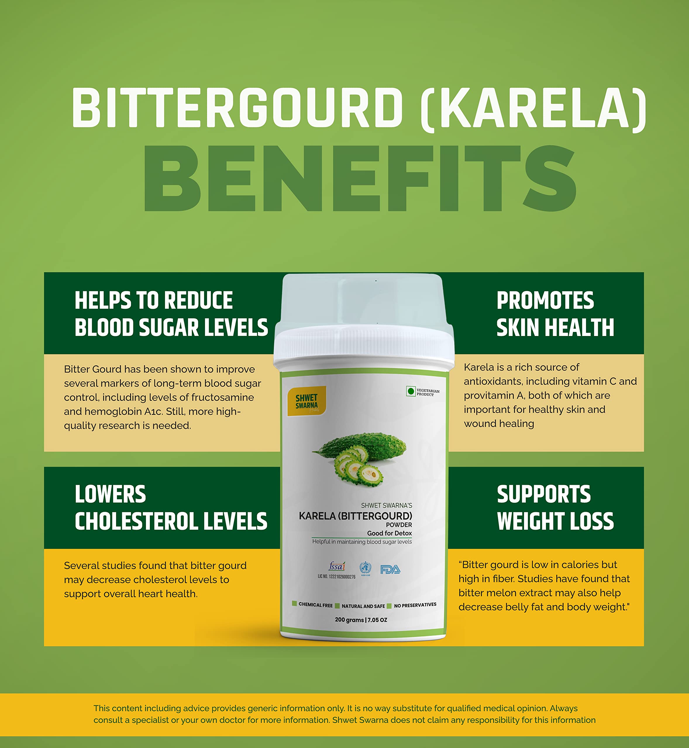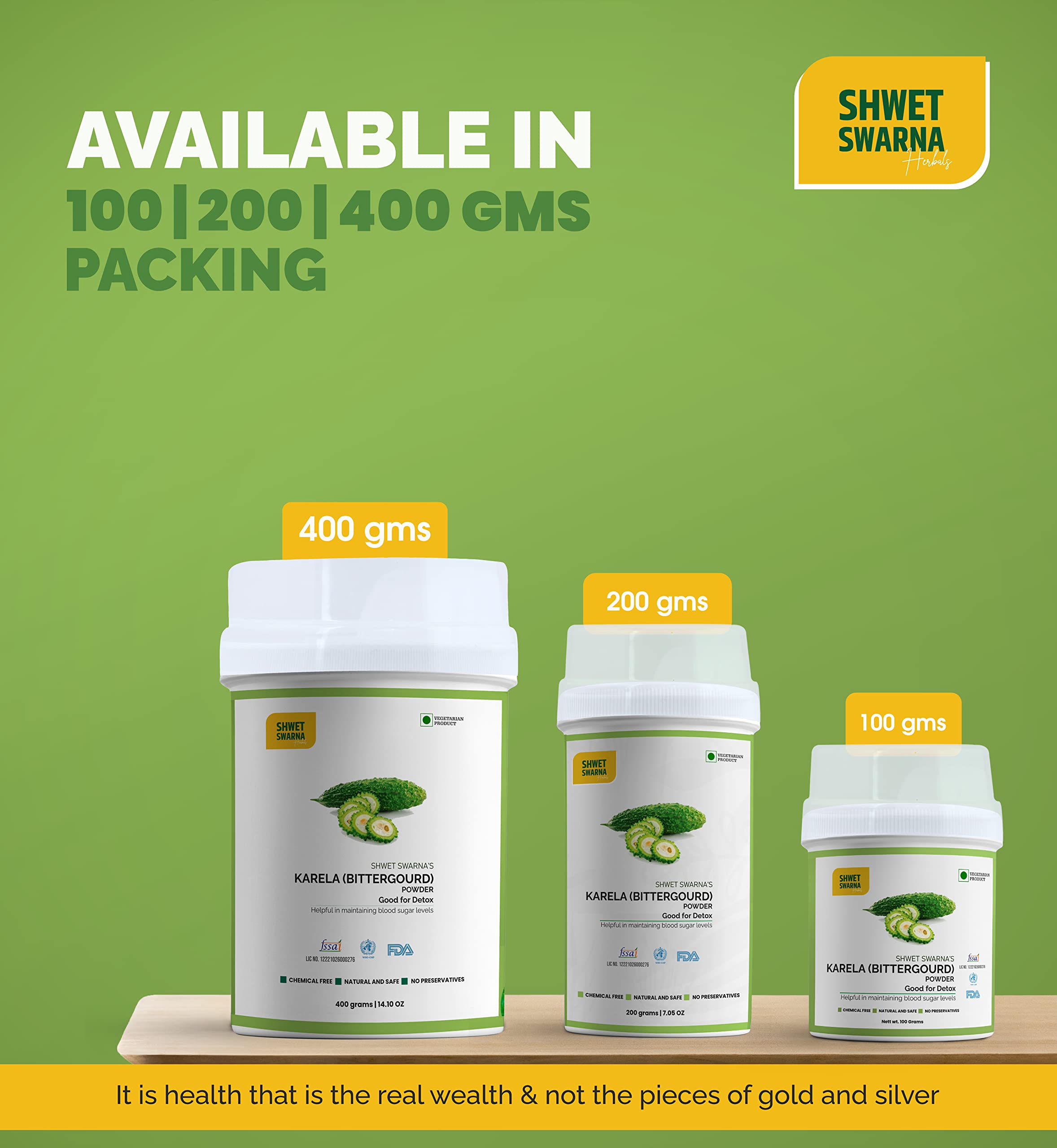 SHWET SWARNA Karela Powder/BITTER GOURD powder 100 Grams 100% Natural Karela Powder.