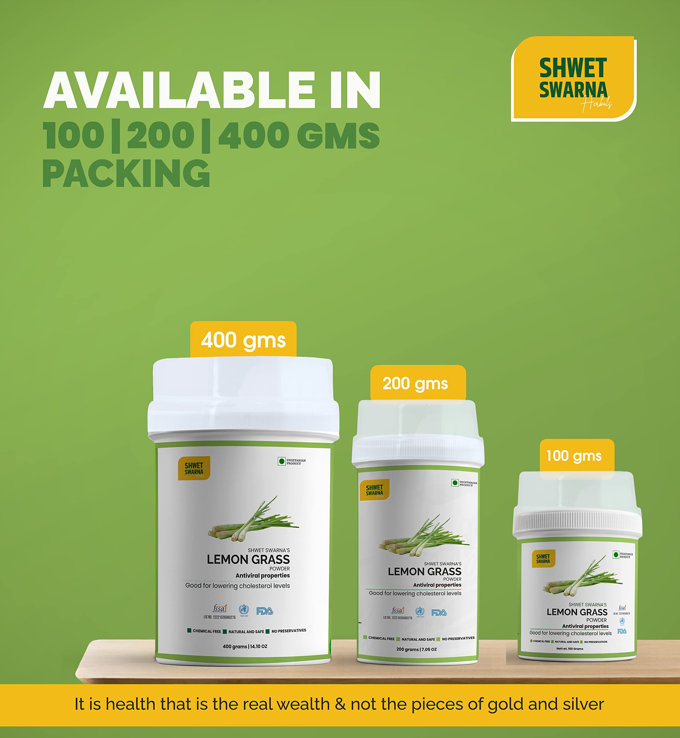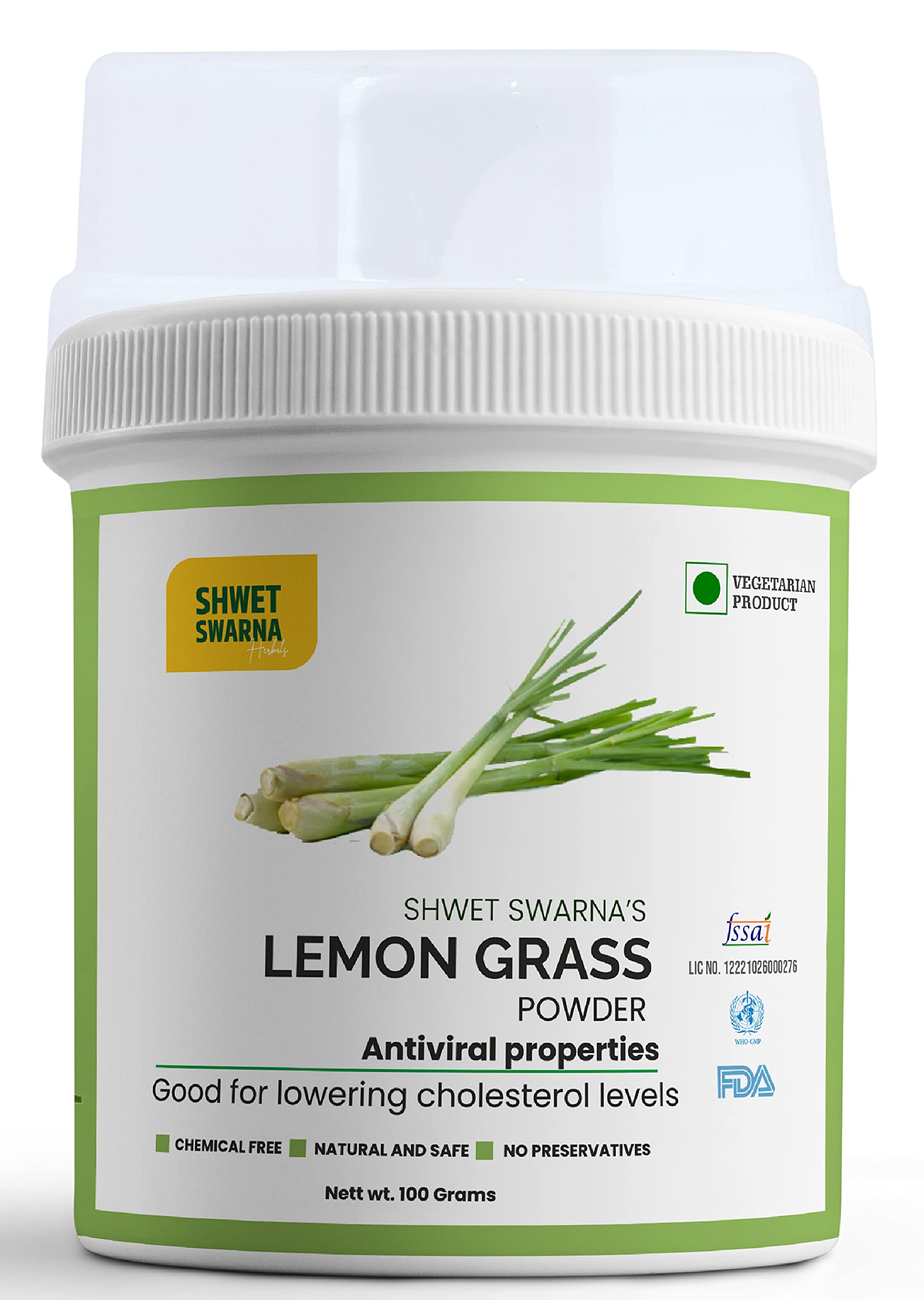 SHWET SWARNA LEMON GRASS Powder Natural & Cymbopogon citratus Powder Herbal Health Supplement with Antiviral properties 100 grm.