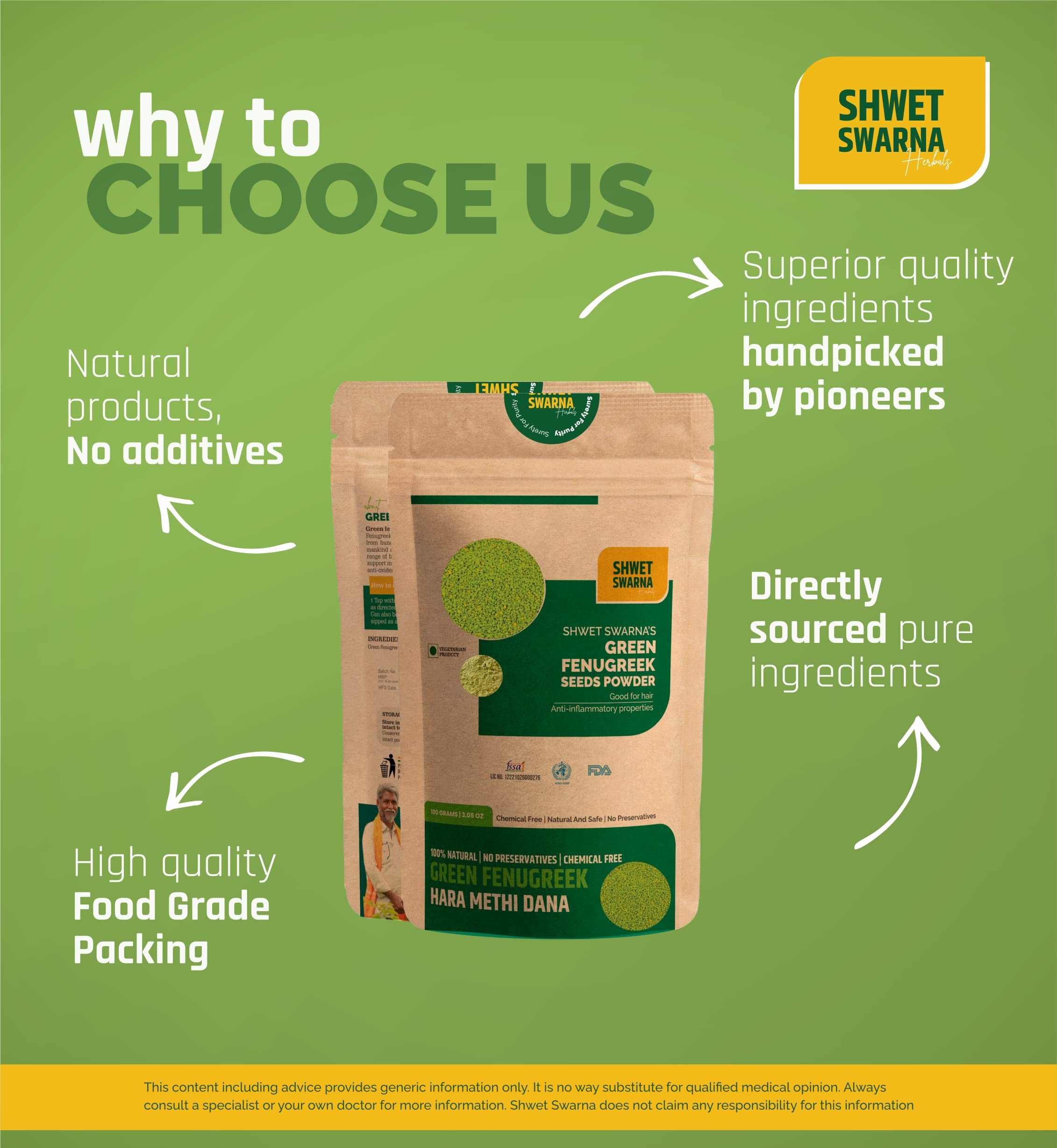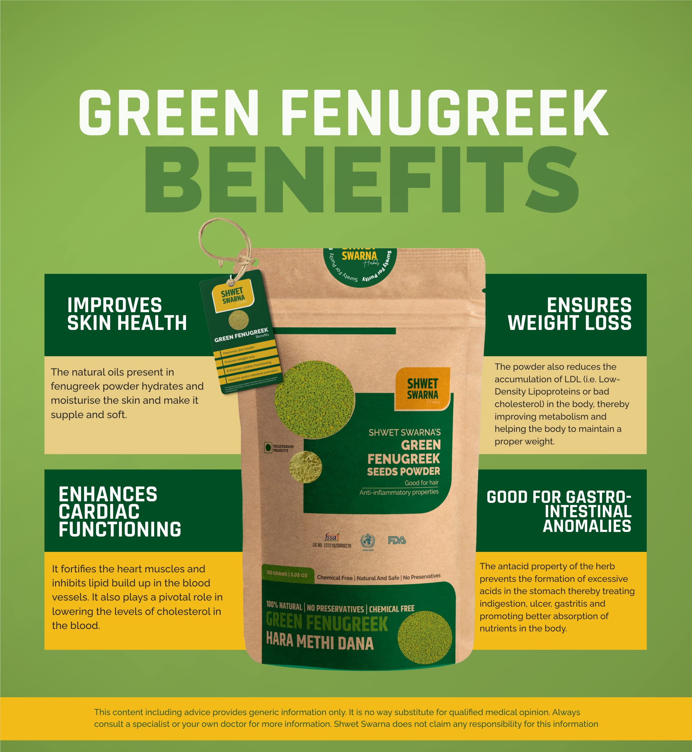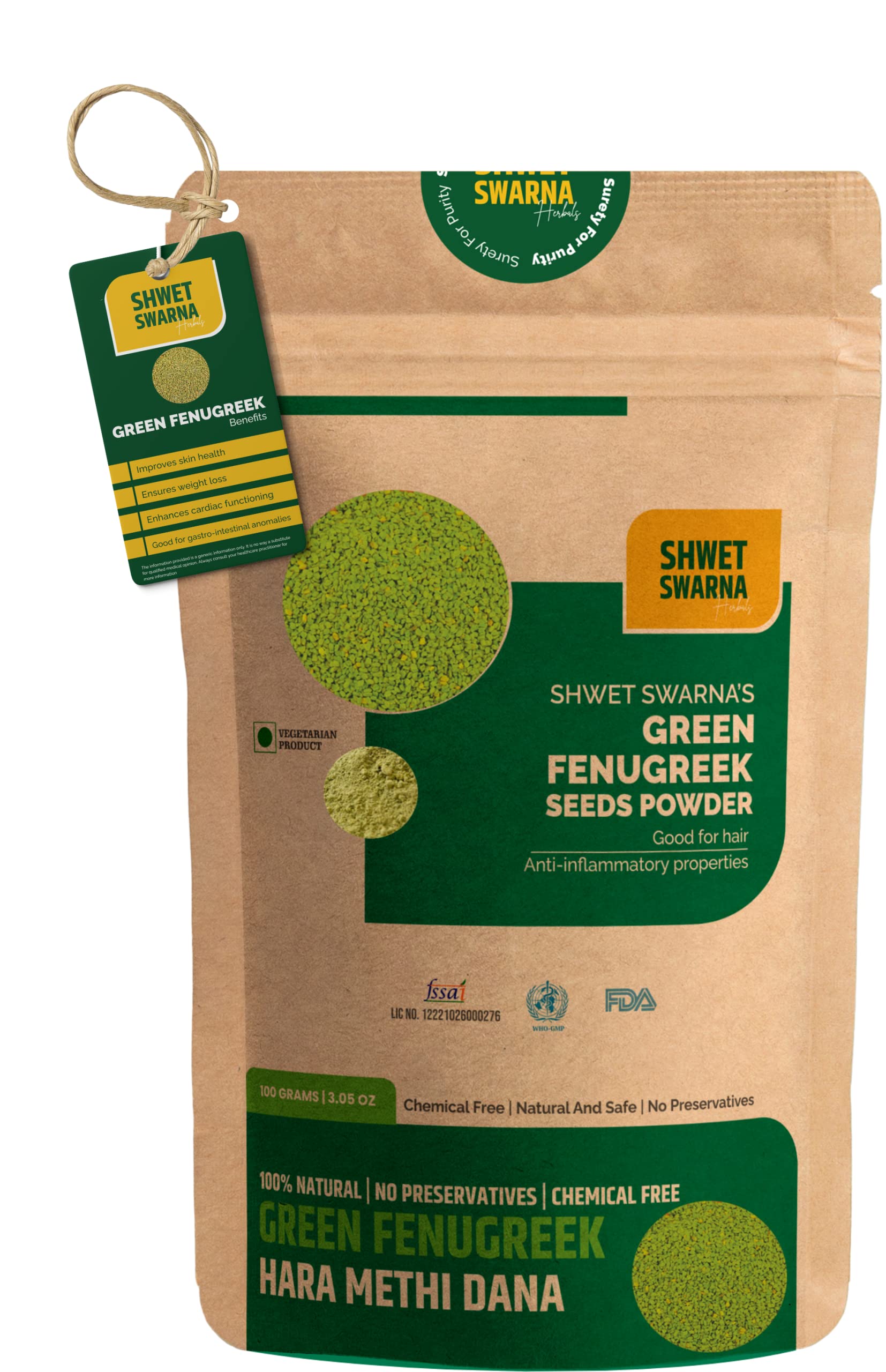 SHWET SWARNA Pure Natural Green Fenugreek Seeds Hari Dana Methi Herbal Ayurvedic Health Supplement Product 100GM