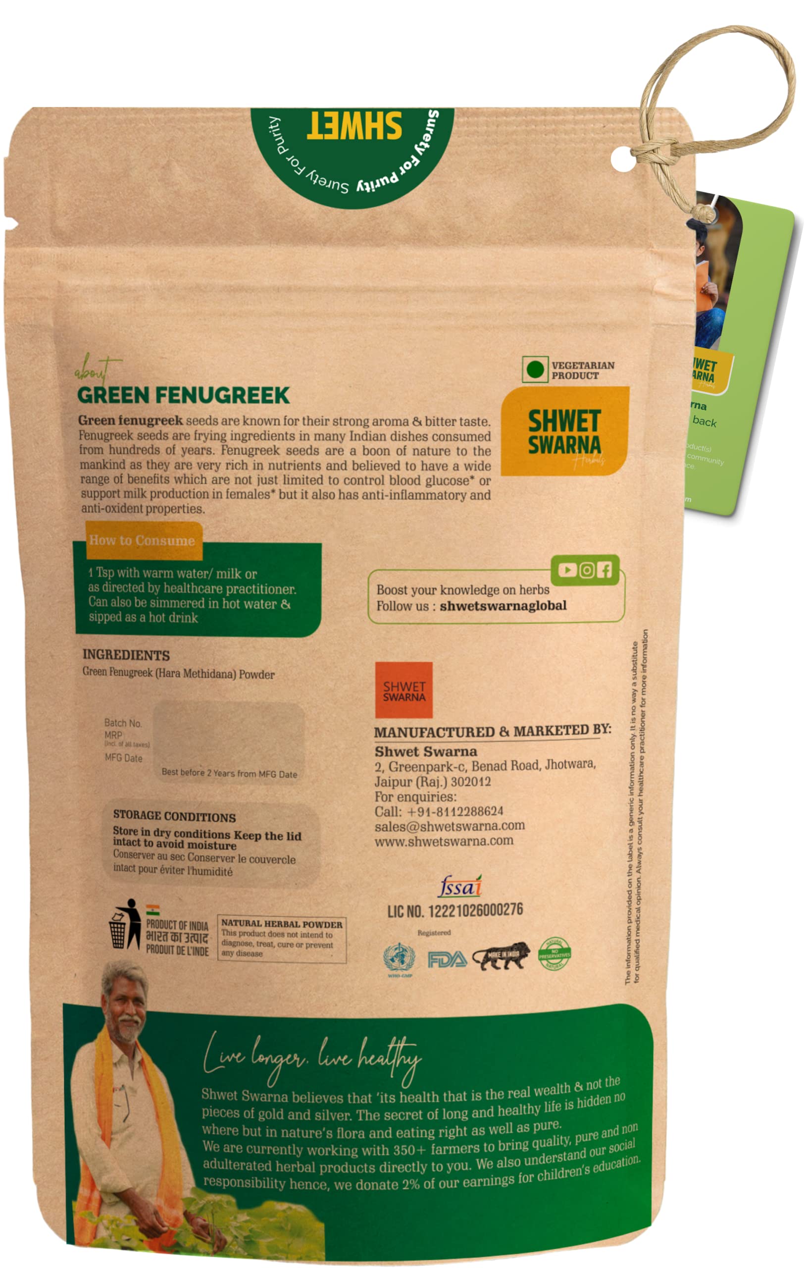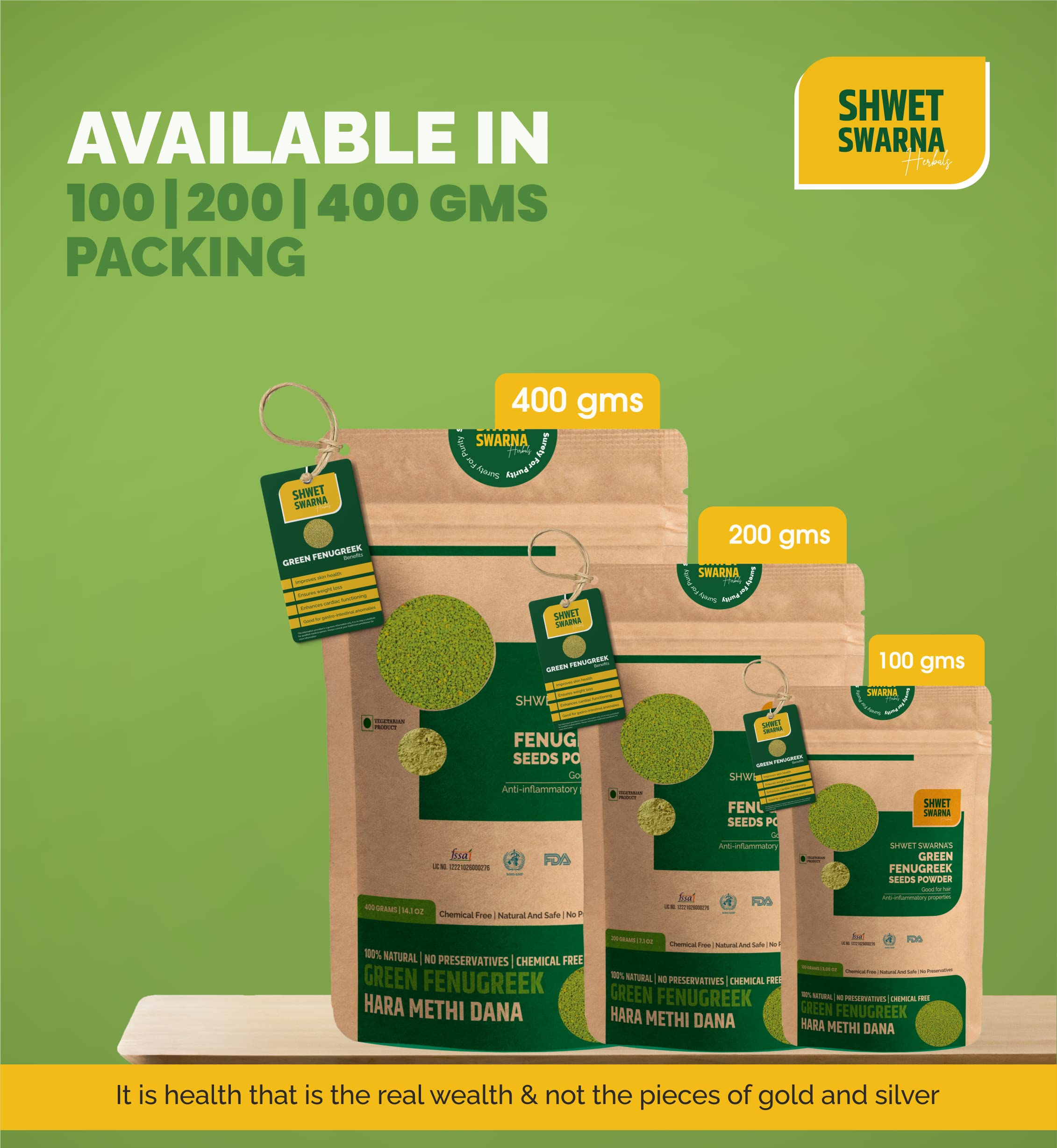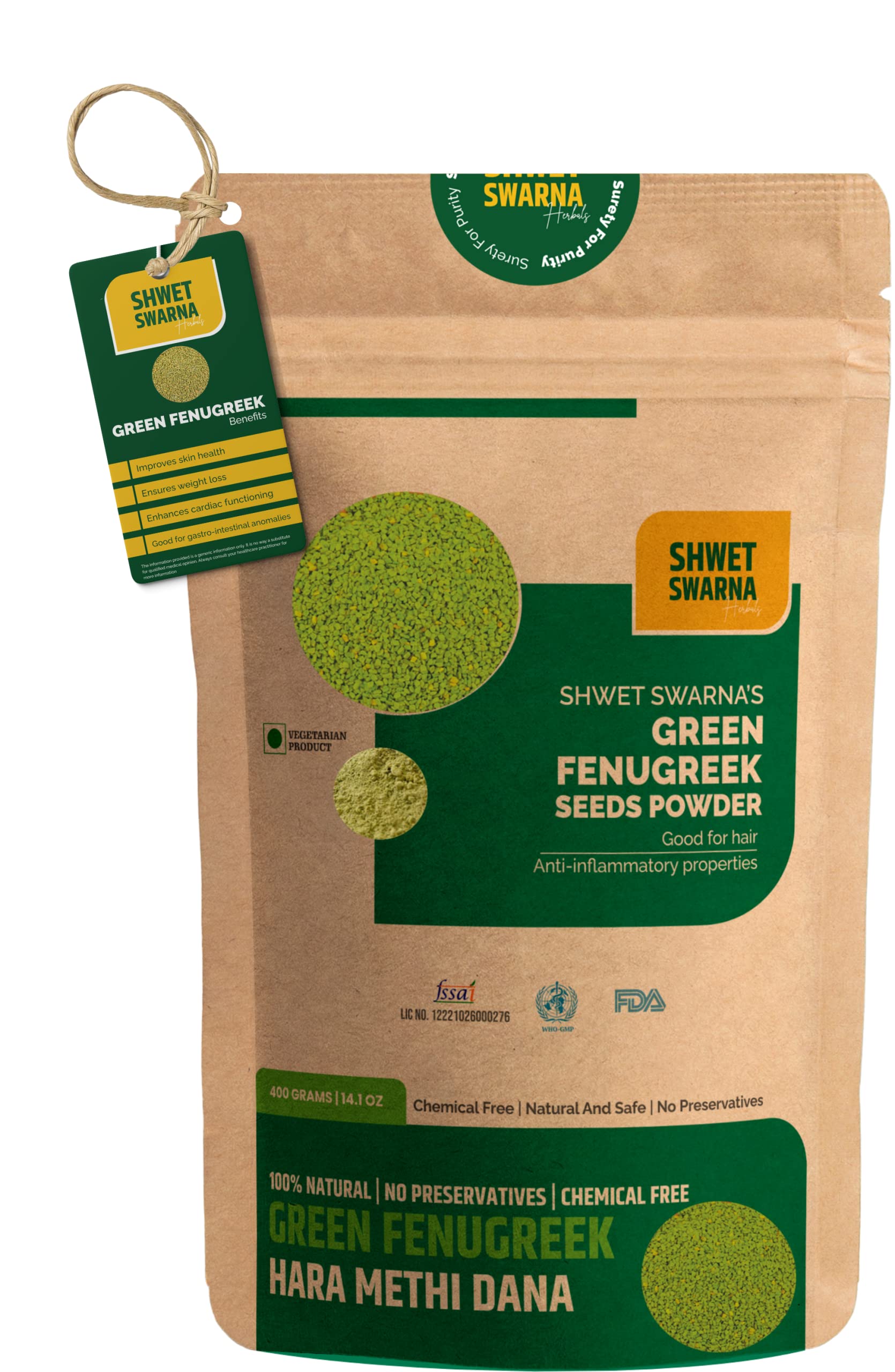 SHWET SWARNA Pure Natural Green Fenugreek Seeds Hari Dana Methi Herbal Ayurvedic Health Supplement Product 400GM
