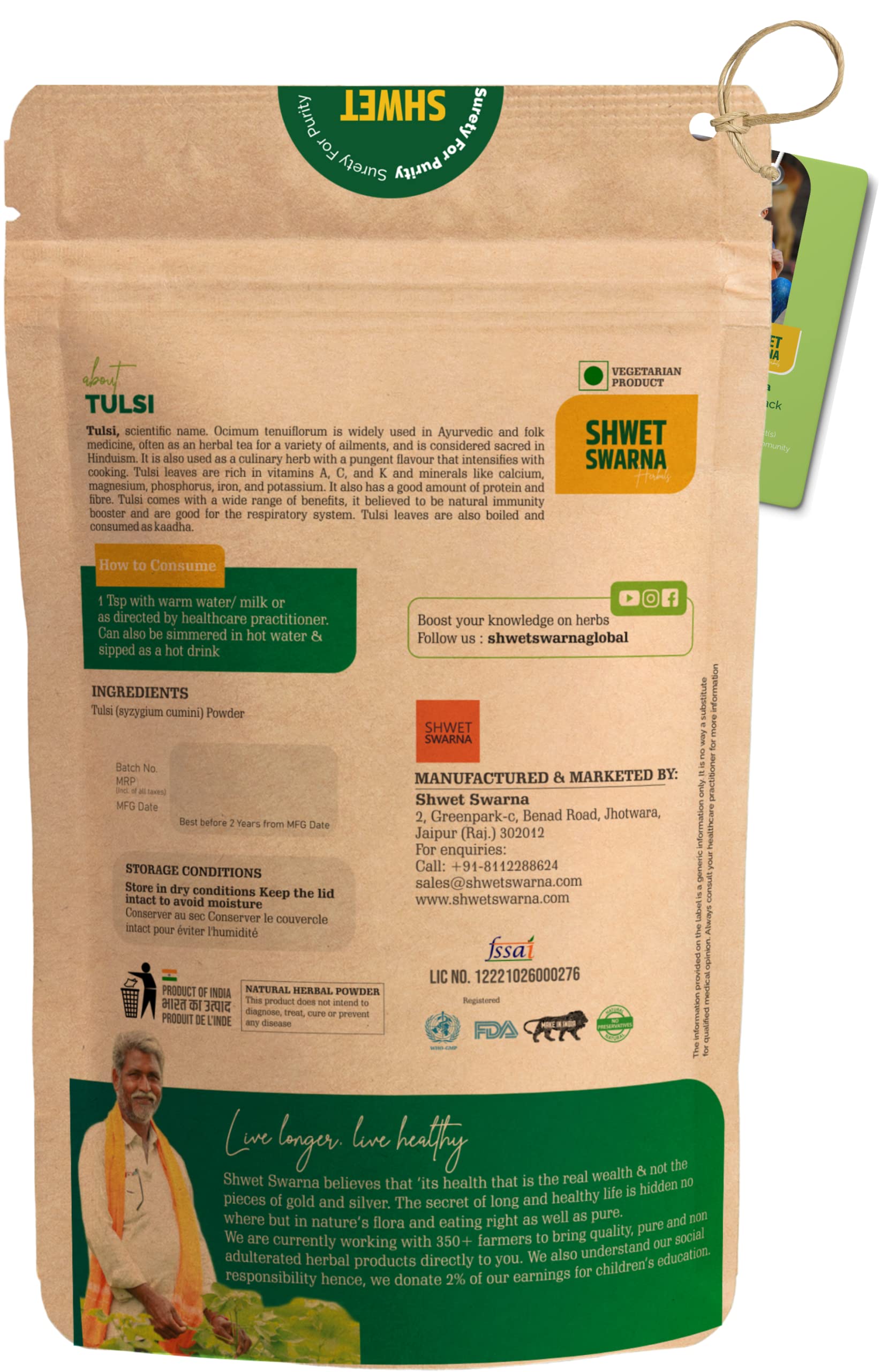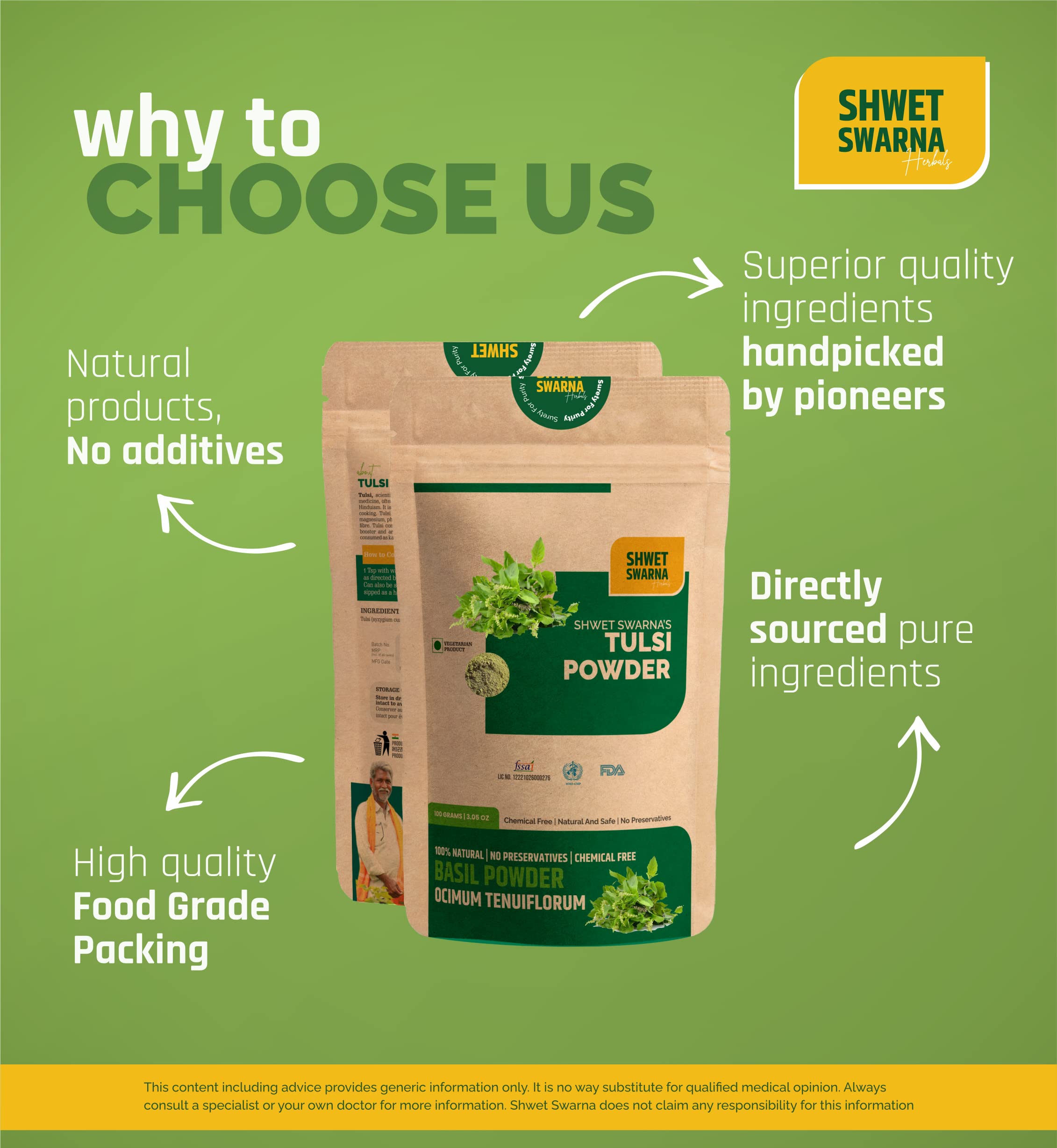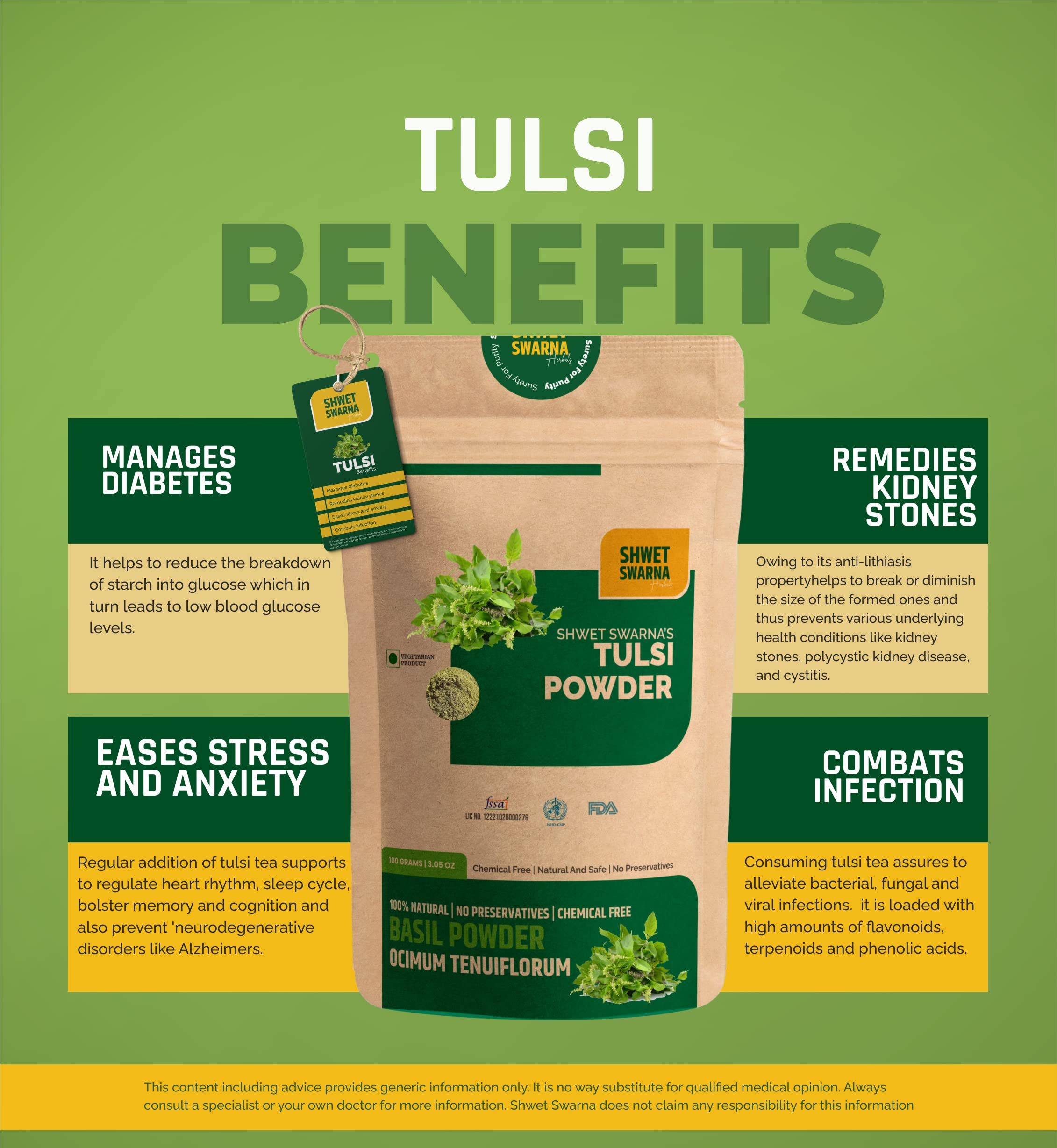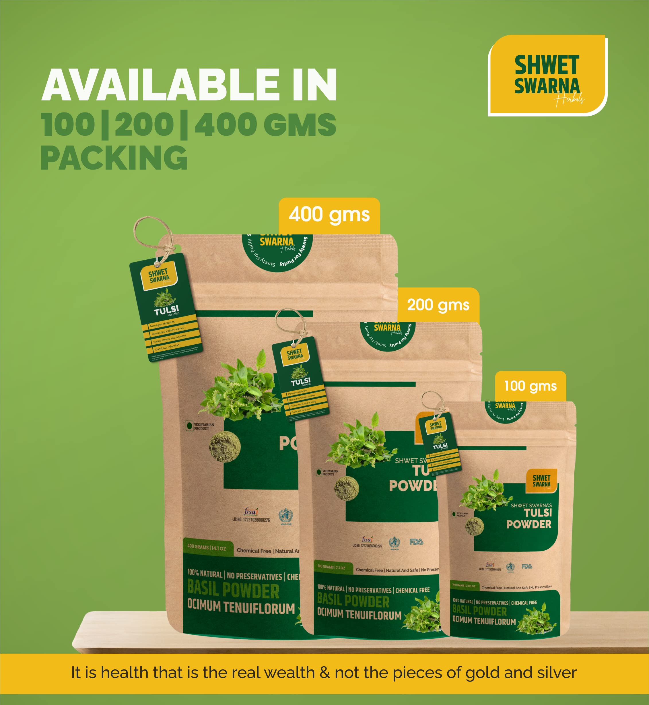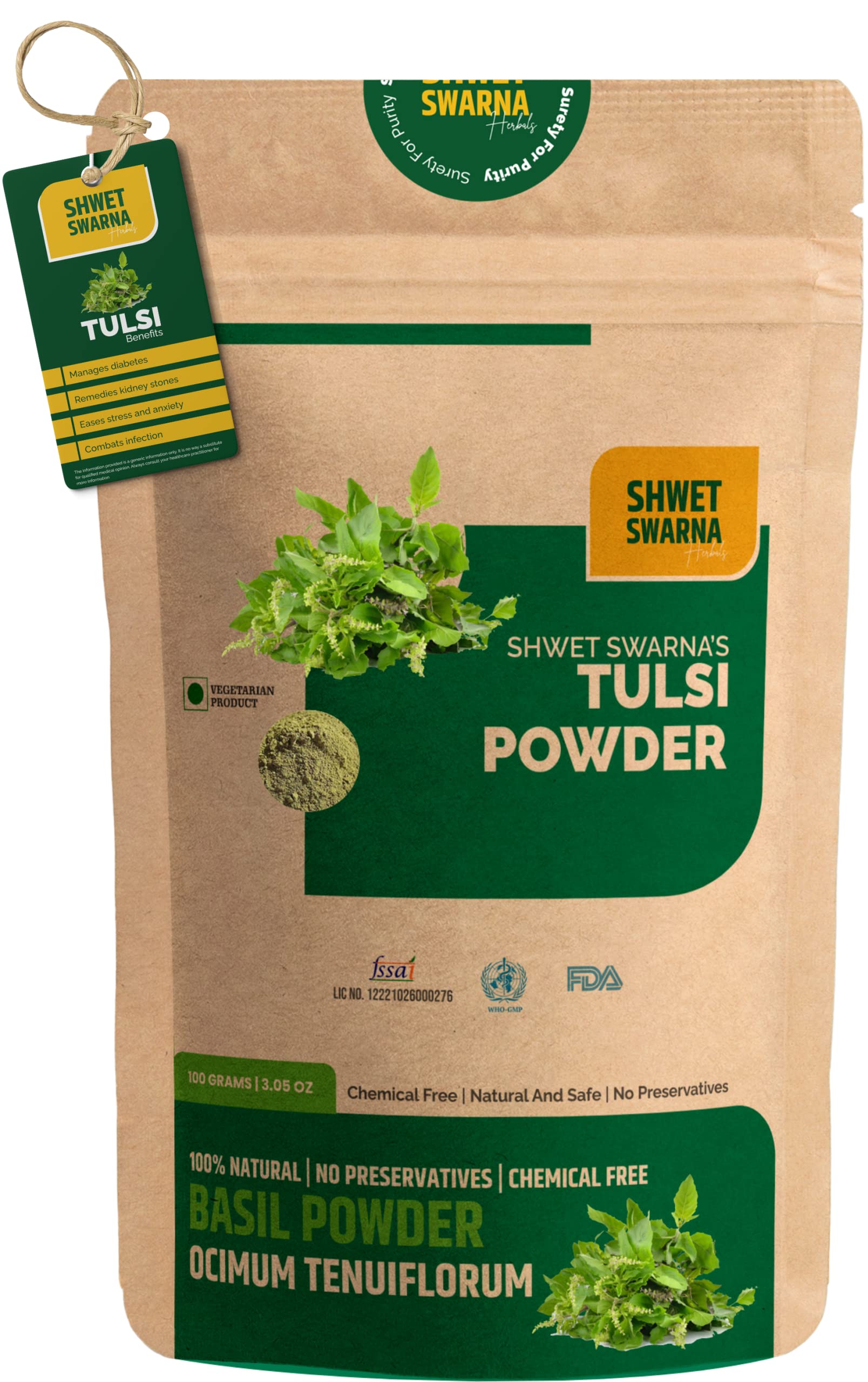 SHWET SWARNA Pure Natural Tulsi Basil Leaves Powder Herbal Ayurvedic Health Supplement Product 100GM
