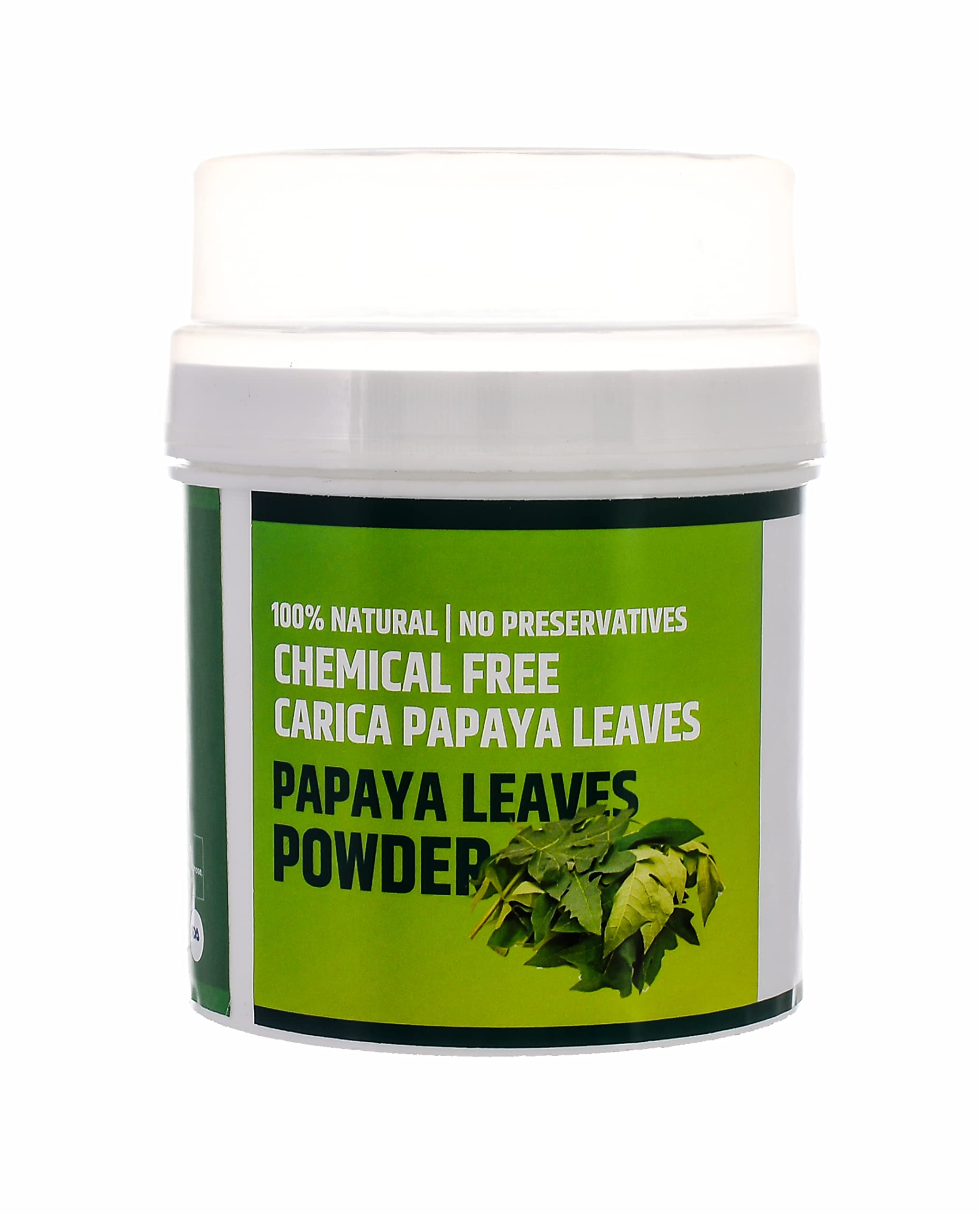 Papaya leaf powder is effective for treating dengue fever and malaria as well as supporting digestion treating skin problems and promoting hair development.