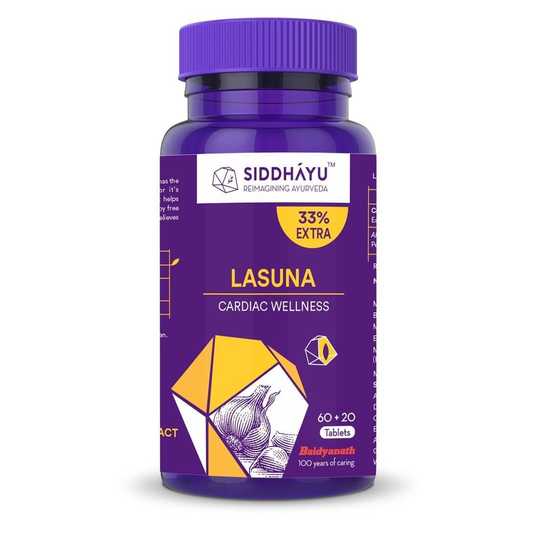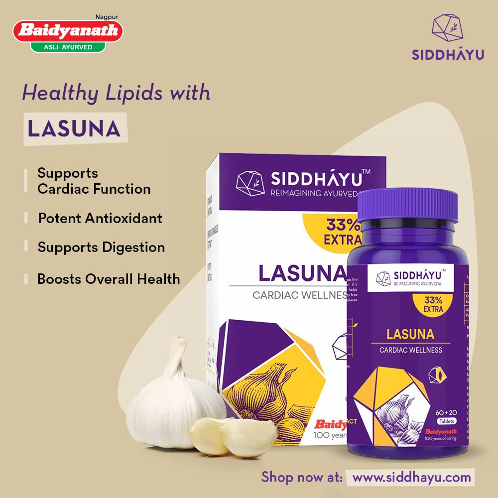 Siddhayu Lasuna Garlic Tablet | Cardiac Wellness | (From the house of Baidyanath) | Improves Digestion | Balance Cholesterol Levels | 60 + 20 free Tablets