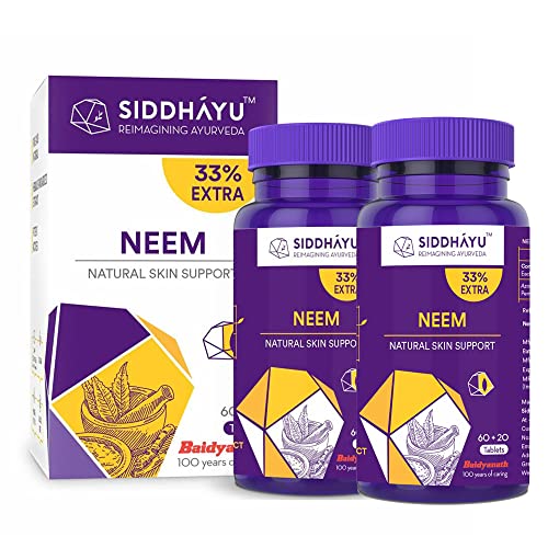 Siddhayu Neem Tablet (From the house of Baidyanath) | Natural Skin Support | Blood Purifier | Anti Acne and Pimples | (60 + 20 Tablets Free) - Pack of 2