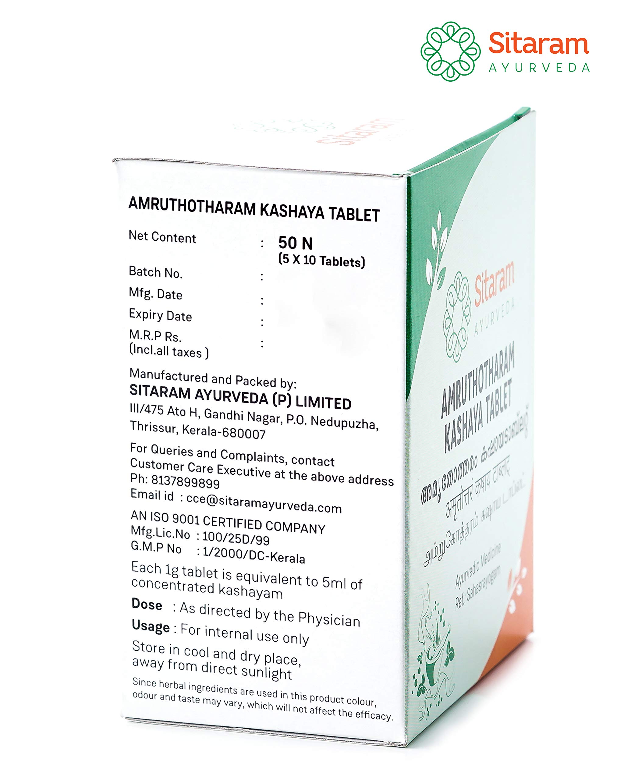 Sitaram Amruthotharam Kashaya Tablet 50 Nos Ayurvedic supplement for relieving inflammatory pain and edema. Boosts digestion and metabolism