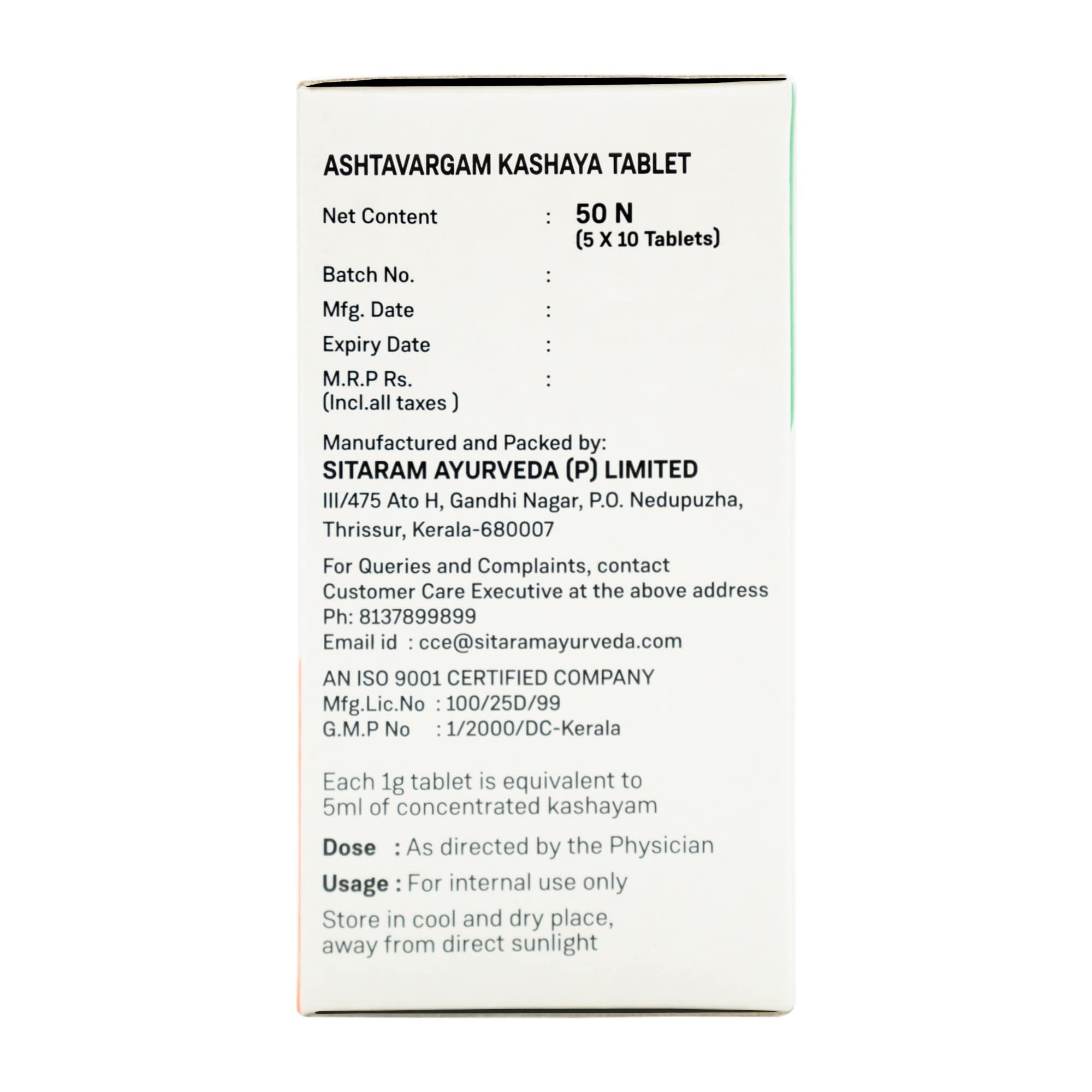 Sitaram Ayurveda Ashtavargam Kashayam Tablets | Ashtavargam Kwatham (50 NOS)
