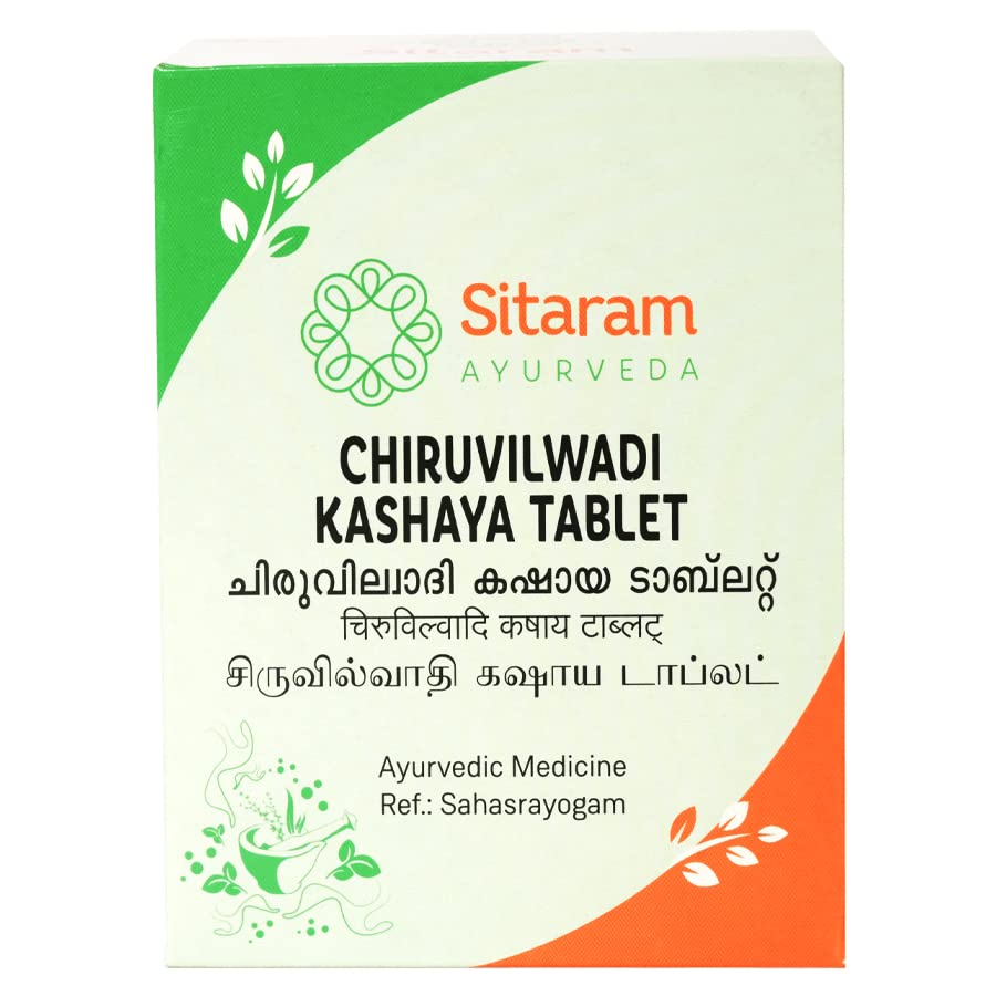 Chiruvilwa (Indian Elm) Chitraka (White wort) and Abhaya (Terminalia chebula) are potent ingredients of this Kashaya that revive and nurture the Jatharagni in the body. A competent fire or metabolic agency is central to the Ayurvedic concept of health. Chiruvilwadi kashayam is your simple way to get there. Kashaya or herbal decoctions harness the healing properties of herbs and roots in a mild and easily absorbable water base. The Tab. modification allows easy transportation and administration without compromising on its therapeutic benefits.