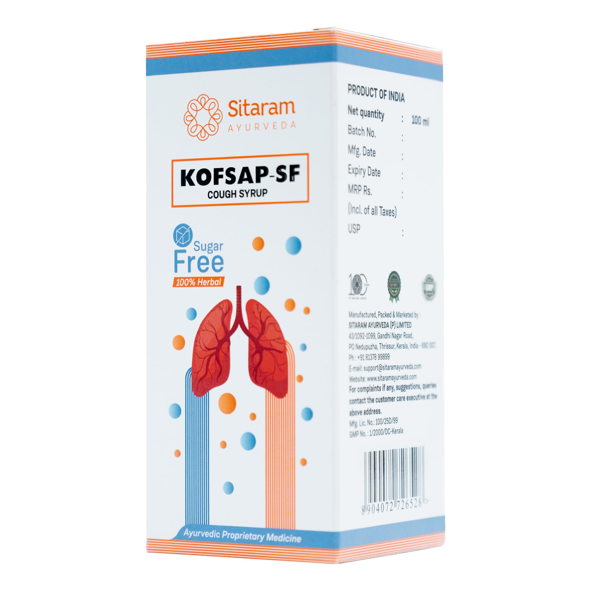 Sitaram Ayurveda Kofsap - SF Cough Syrup 100 Ml | Soothing Herbal Blend | Sugar-Free Composition | Non-Drowsy & Gentle | Ayurveda-Inspired