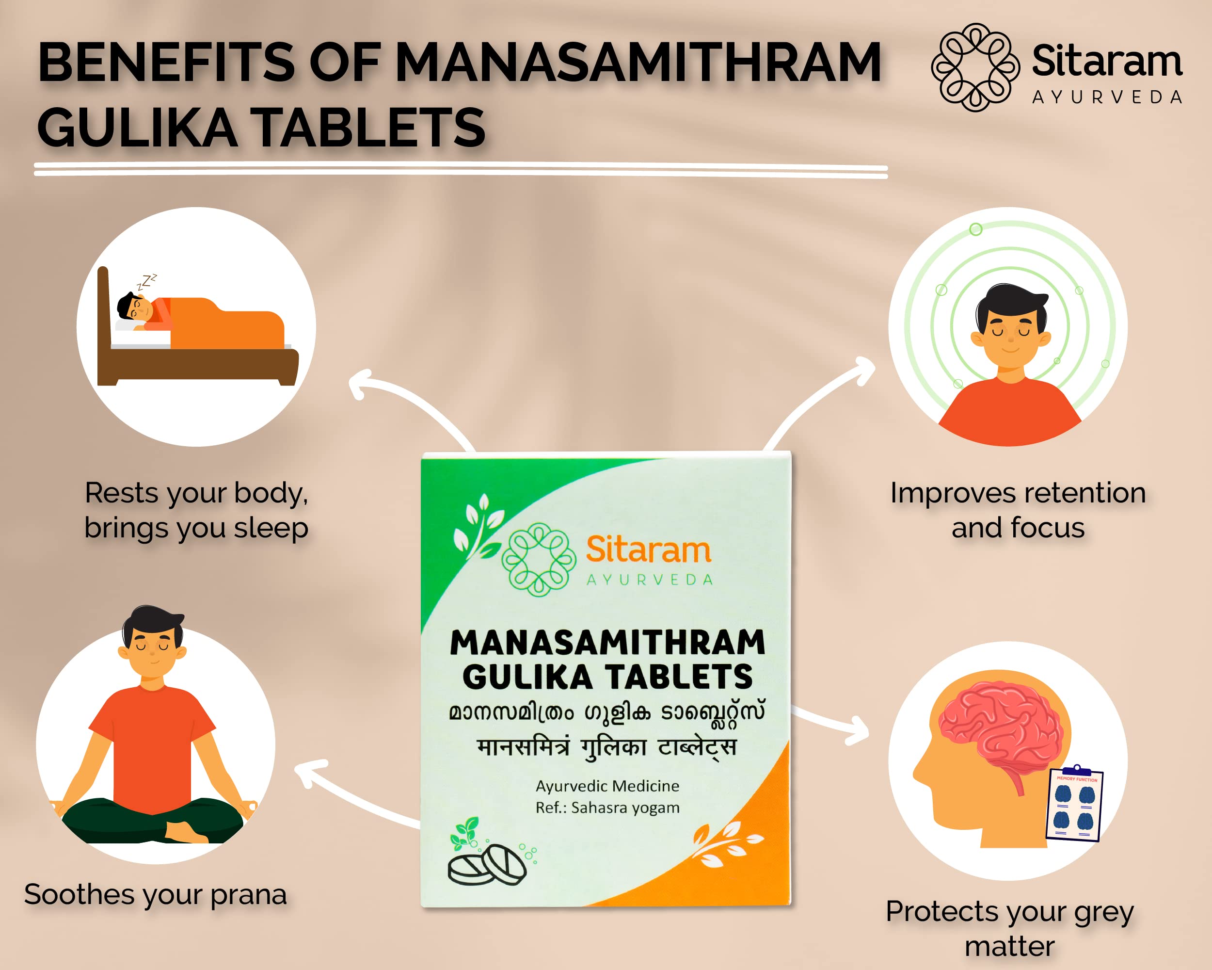 Sitaram Ayurveda Manasamitram Gulika Tablet (60 NOS) | Kerala Ayurvedic Manasamitra Vatakam | Manasamitravatakam