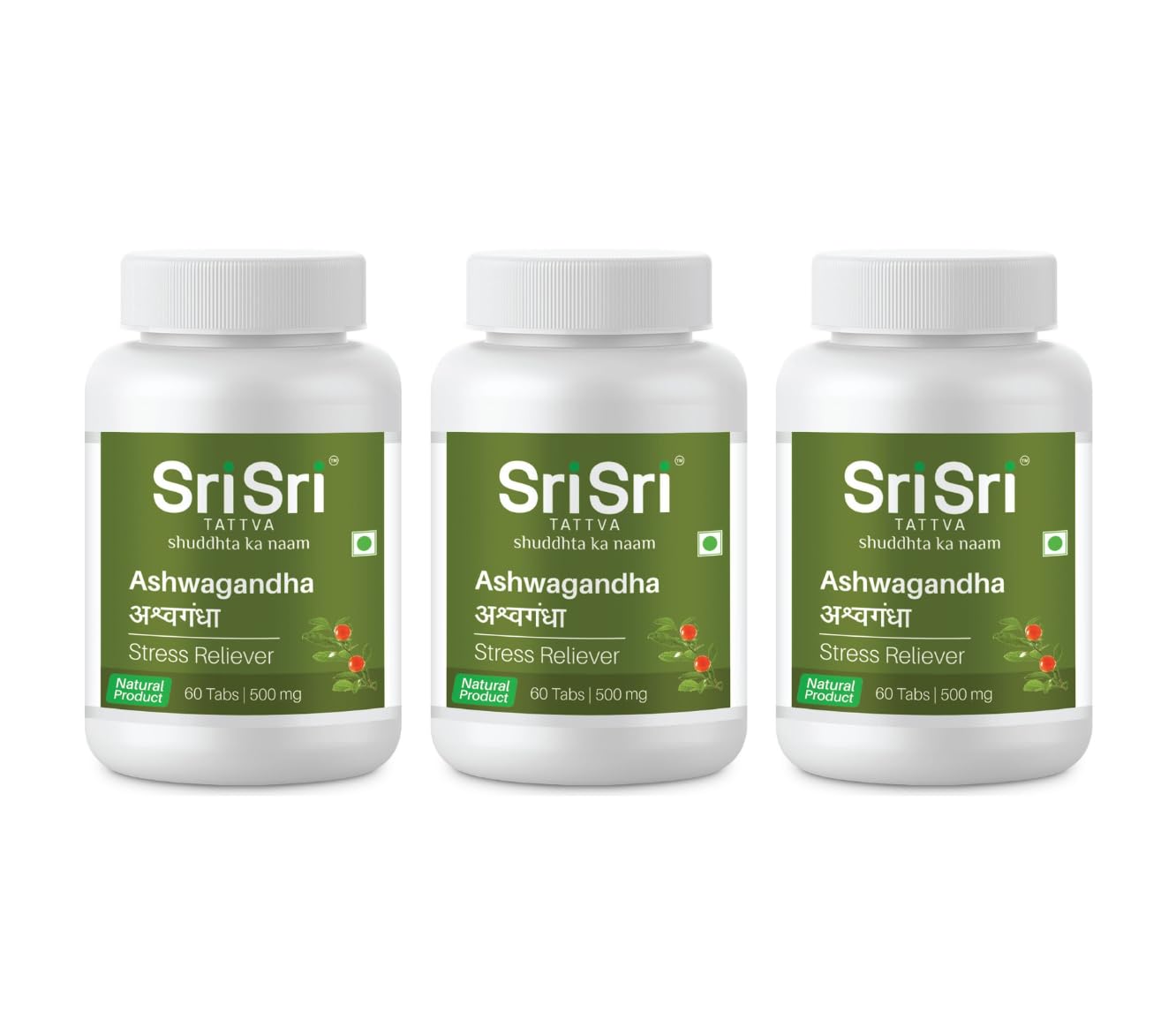 Sri Sri Tattva Ashwagandha Tablet | Ashwagandha Supplements | Immunity Booster | Helps Relieve Anxiety & Stress | Rejuvenates Mind & Body | 60 Tablets 500 Mg I Pack of 3