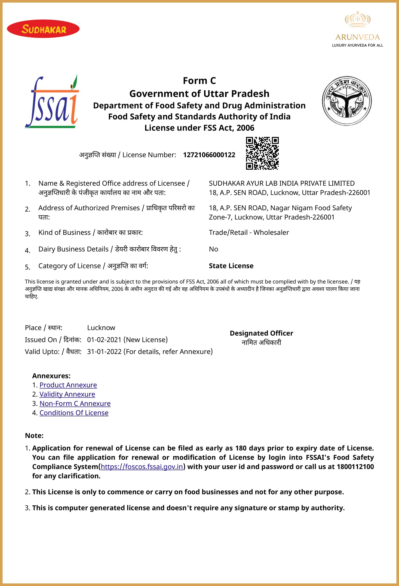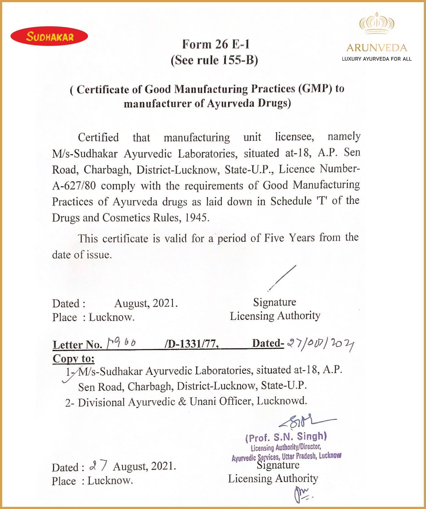 The 94 years old brand 'SUDHAKAR AYUR LAB INDIA PRIVATE LIMITED' had it's humble beginning in the year 1926, in Lucknow city, Uttar Pradesh. We have come a long way since then, from being a family-owned business to transforming into a professionally managed brand. We have been a prominent manufacturer and supplier of ayurvedic health care products not only in Uttar Pradesh but in the Hindi land. So what sets us apart? The answer is the choices we made, right from premium ingredients to the intense scientific research and highest standards of quality control.