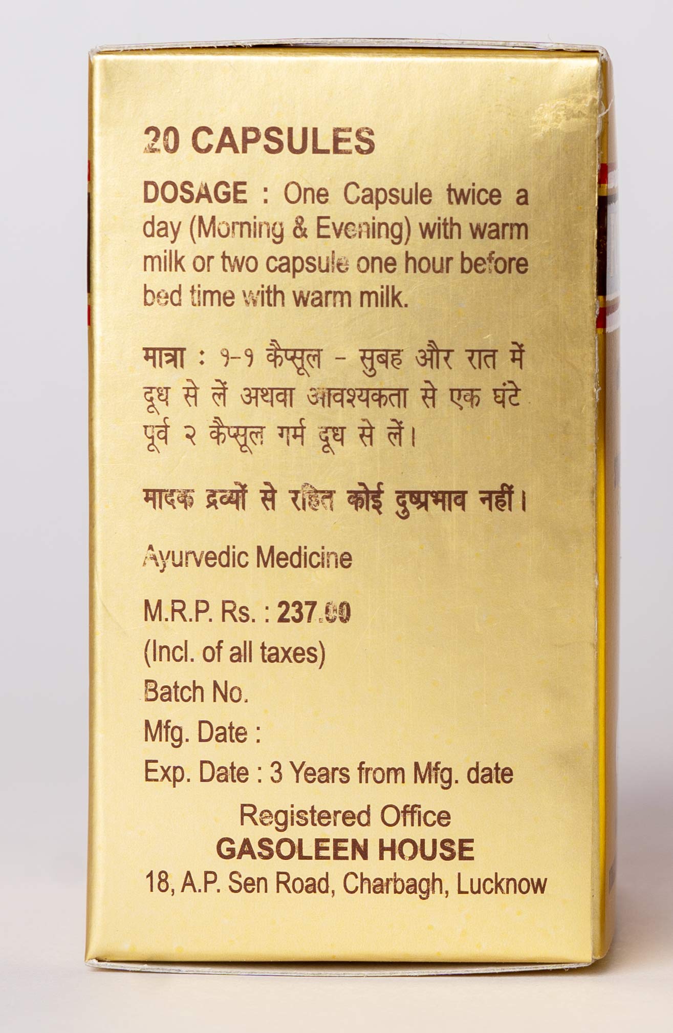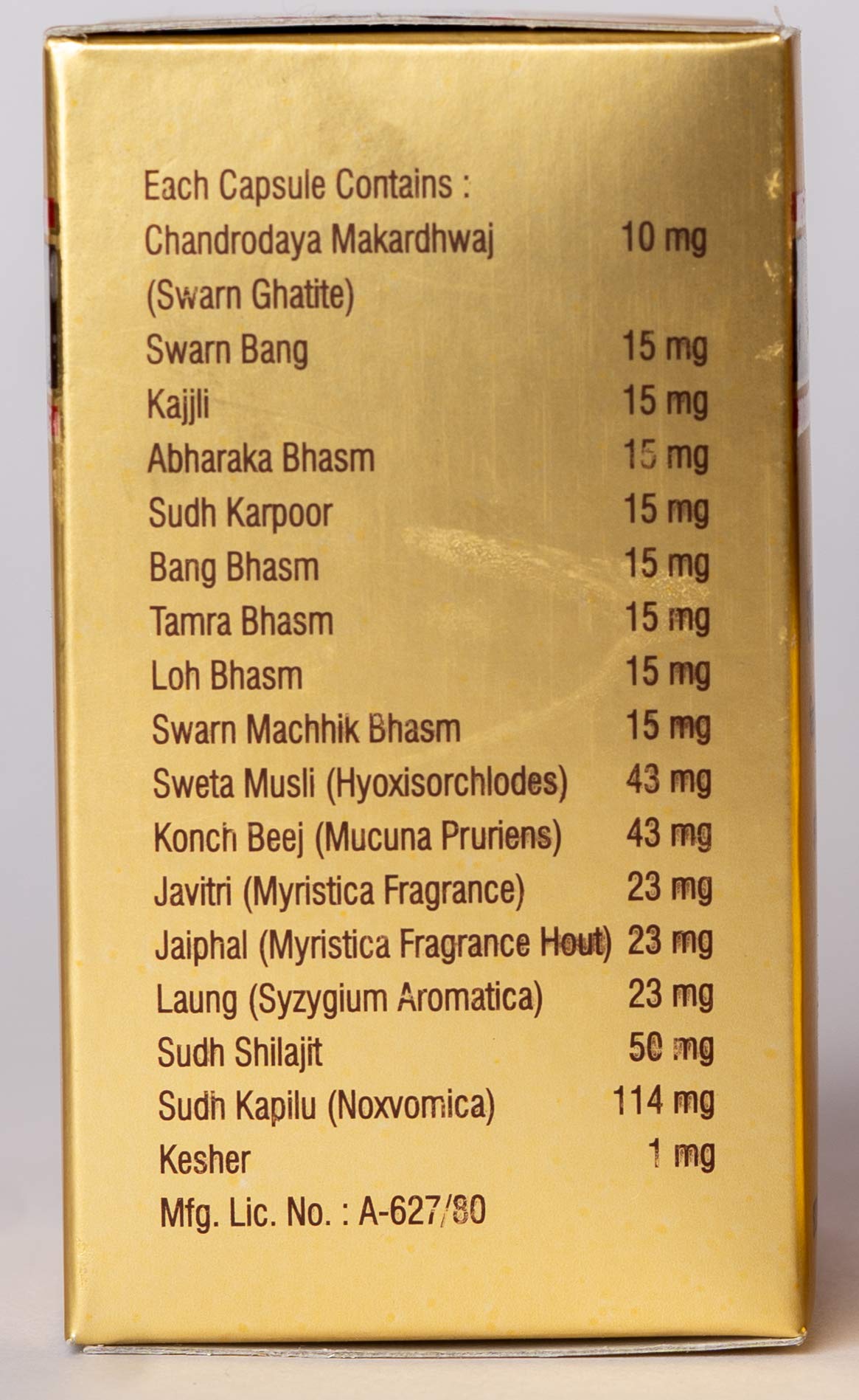 • 1. Ingredients:- Chandrodaya Makardhwaj (Monoatomic Gold) Contains Purified Gold Which Is a Precious Metal Known to Mankind for Its Properties That Give Power Maintain Vigour and Optimize Male Performance. It o Helps in Increasing the Tone and Capacity of