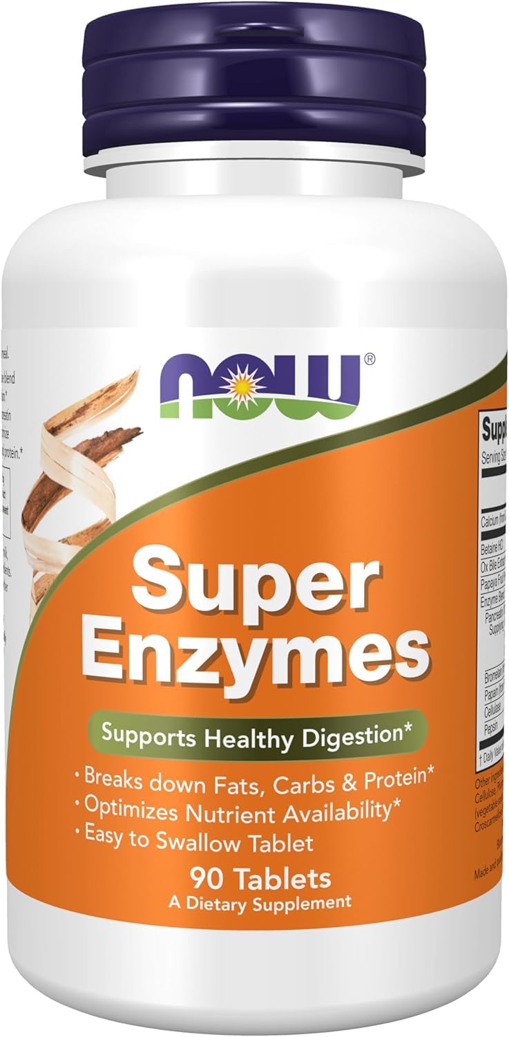PRODUCT DESCRIPTION Breaks down Fats Carbs & Protein* Optimizes Nutrient Availability* Easy to Swallow Tablet NOW Super Enzymes is a comprehensive blend of enzymes that supports healthy digestion.* Formulated with Bromelain Ox Bile Pancreatin and Papain Super Enzymes helps to optimize the breakdown of fats carbohydrates and protein.*