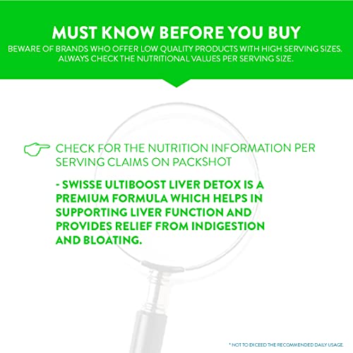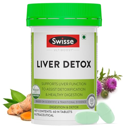 Swisse Ultiboost Liver Detox Supplement with High Strength Milk Thistle (Silymarin Marianum) - 5000 mg, Turmeric - 3000 mg & Choline - 82.5 mg for Complete Liver Support, Cleansing and Detox - 60 Tablets (Vegan Supplement)