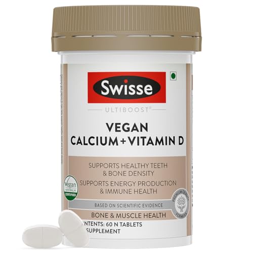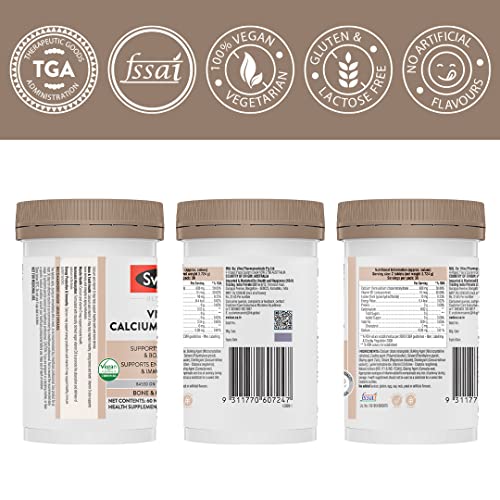 Swisse Vegan Calcium + Vitamin D3 for Stronger Bones, Teeth, Muscles & Immunity - 60 Tablets (Manufactured In Australia, Vegan Source Calcium Supplement For Higher Absorption)