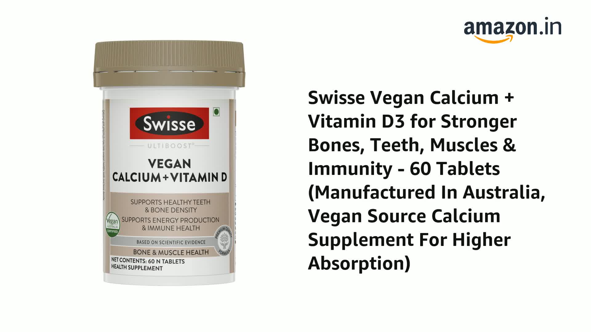 Swisse Vegan Calcium + Vitamin D supplement provides far advanced formulation of calcium with Calcium citrate tetrahydrate form with added Lysine compared to any other supplement sold in market in the same category.