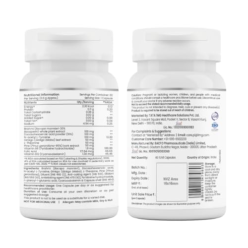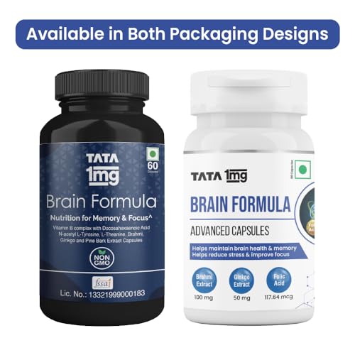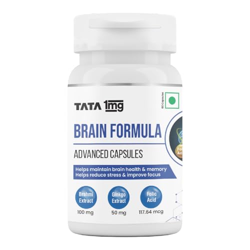 Tata 1mg Brain Formula With Vitamin B Complex L-Tyrosine L-Theanine Brahmi Ginkgo And Pine Bark Extract Capsule Helps In Improving Memory And Concentration For Unisex (Pack Of 60 Capsules)