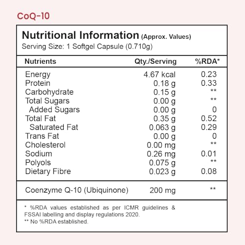 Tata 1mg CoQ 10 (Coenzyme 10) ((200mg)) Capsules, Supports Heart and Vascular Health, Promotes Healthy Cellular Function For Unisex (Pack Of 30 Capsules), 50 grams
