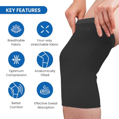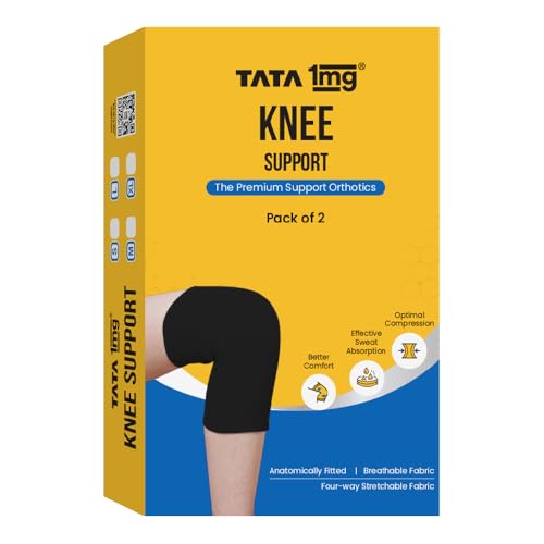 Tata 1mg Knee Cap Black Edition for Sports, Exercise & Pain Relief | Knee Support Guard Pair for Men and Women(Pack of 2, Size: Large)