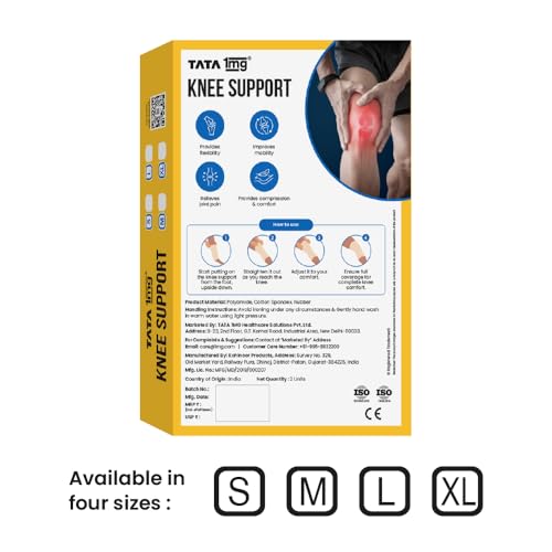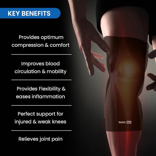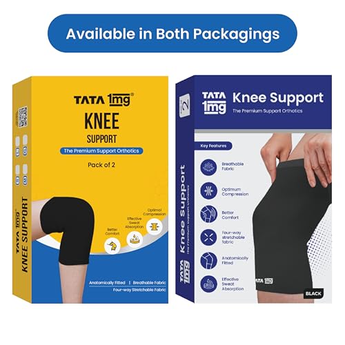 Tata 1mg Knee Cap Black Edition for Sports Exercise & Pain Relief | Knee Support Guard Pair for Men and Women(Pack of 2 Size: Large)