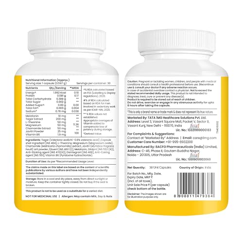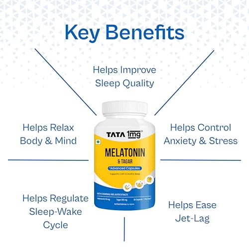 Tata 1mg Melatonin 10mg Vegetarian Capsule for Calm & Restful Sleep, For Men & Women, Pack of 30