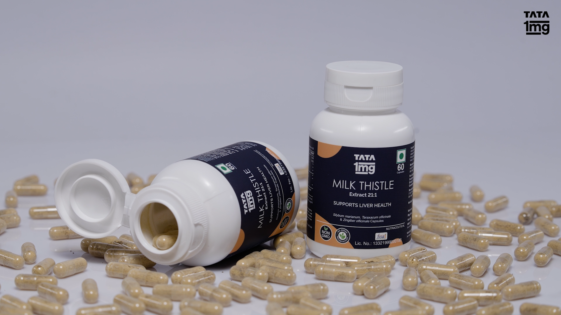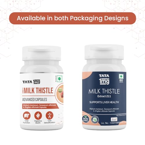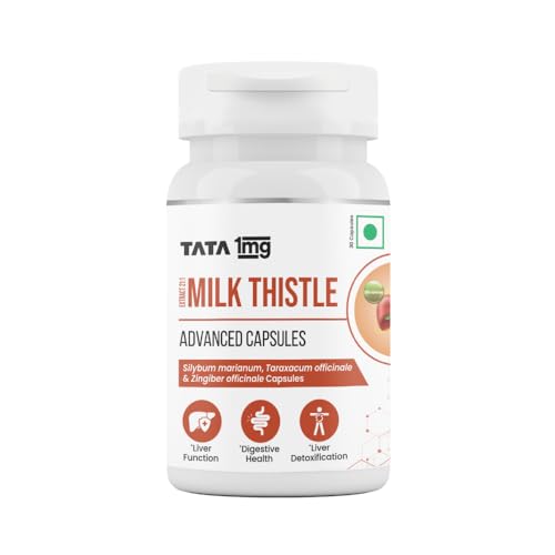 Tata 1mg Milk Thistle Veg Capsule for Liver Detox, 70% Silymarin with Dandelion & Ginger, For Liver Health,For Men & Women, Pack of 60 capsules