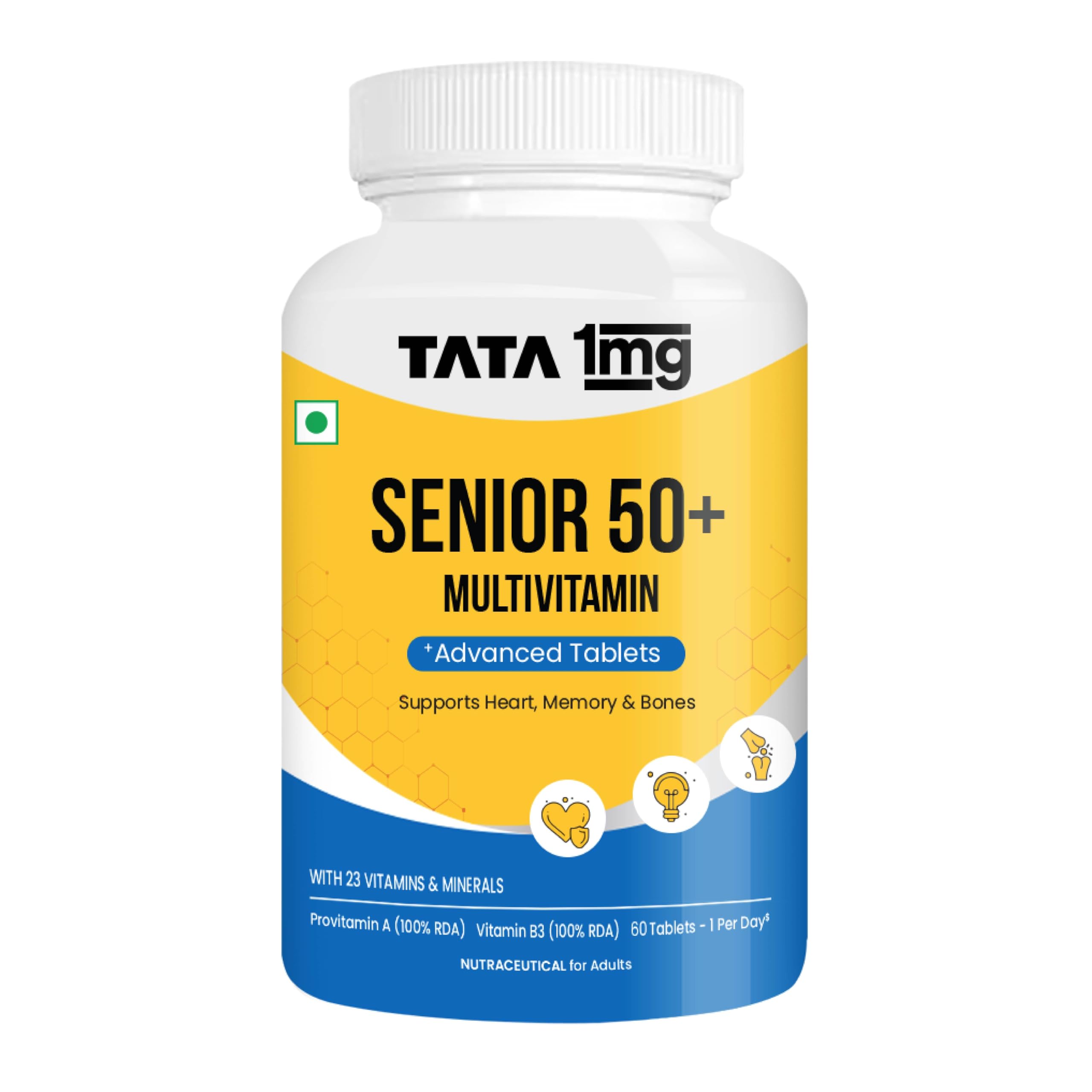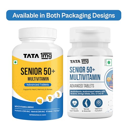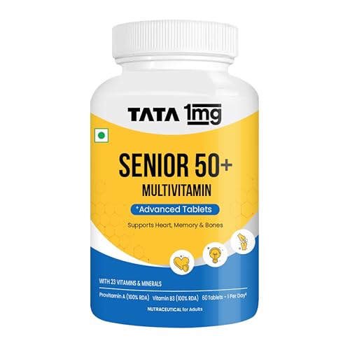 Tata 1mg Senior 50+ Multivitamin & Multimineral Veg Tablet with Calcium for Bone, Skin, Eye, Immunity, Heart & Joints, For Men & Women, Non-GMO & No Added Preservatives (Pack Of 60)