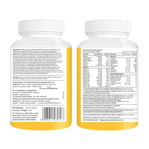 Tata 1mg Senior 50+ Multivitamin & Multimineral Veg Tablet with Calcium for Bone Skin Eye Immunity Heart & Joints For Men & Women Non-GMO & No Added Preservatives (Pack Of 60)