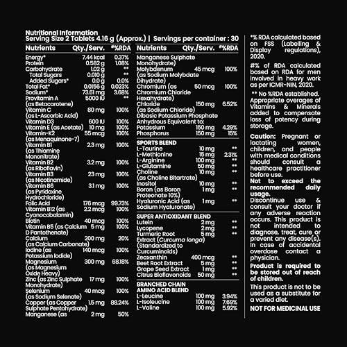 Tata 1mg Sports Multivitamin | With Zinc, Vitamin C, Vitamin D, Calcium and Iron,Supports Energy,Immunity,Performance & Stamina | Pack of 60 Tablets