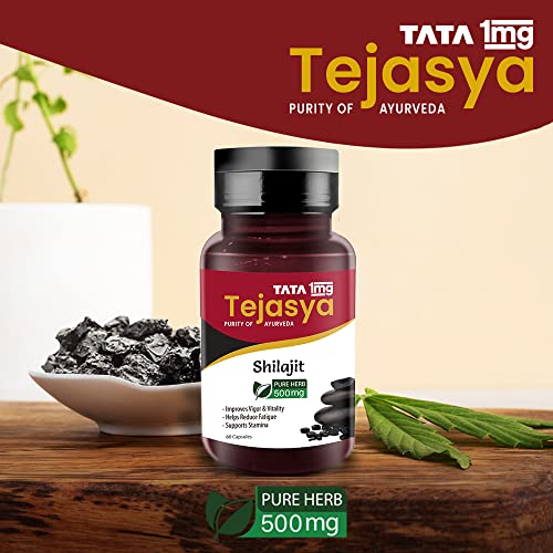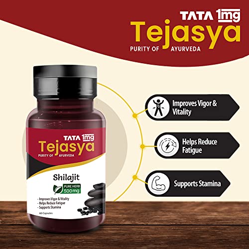 Tata 1mg Tejasya Shilajit Capsule, Supports Strength,Stamina & Energy, Pack of 60 capsules