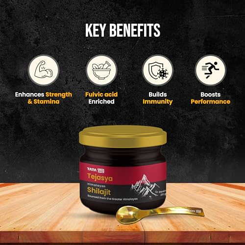 Tata 1mg Tejasya Himalayan Shilajit Resin brings the goodness of ayurvedic traditional therapy. It is sourced from high-altitude areas of the Greater Himalayas formed over centuries through the decomposition of plant matter minerals and microbial activity. Shilajit resin helps in vitality rejuvenation and immunity. It has 80+ trace minerals fulvic acid and humic acid. Tata 1mg Tejasya Shilajit Resin underscores a commitment to holistic wellness presenting a natural remedy rooted in traditional health wisdom for those seeking increased vitality and resilience.