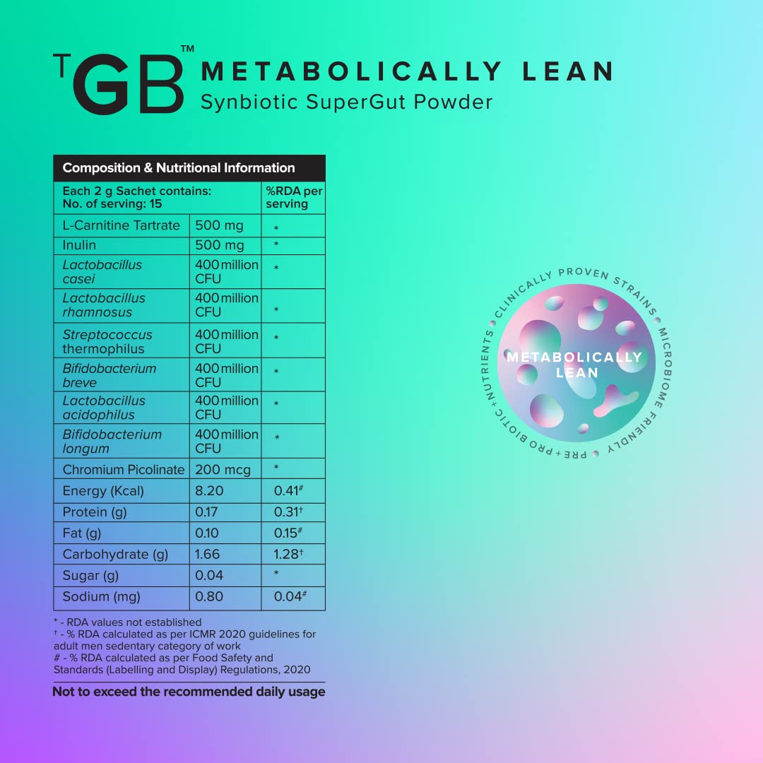The Good Bug Metabolically Lean SuperGut Powder | Probiotics + L-Carnitine | Regulates Metabolism & Cravings | For Men & Women | 60 Days Pack