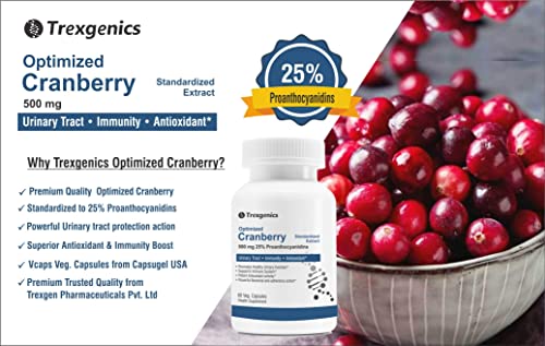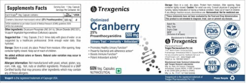 Trexgenics Optimized CRANBERRY (25% Proanthocyanidins) 500mg Urinary Tract, Immunity,Antioxidant (60 Vcaps) (3)