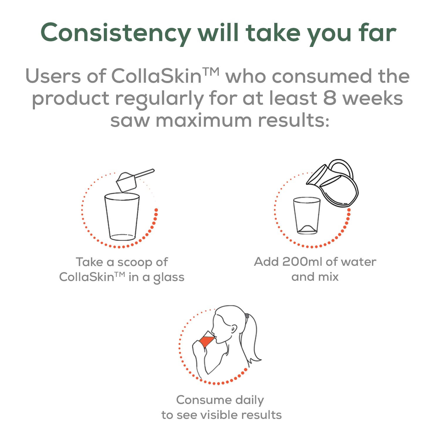 • HOW TO USE: Take one heaping scoop (8 g) of collagen powder & add 100 ml of water. Stir vigorously until uniform & drink chilled!