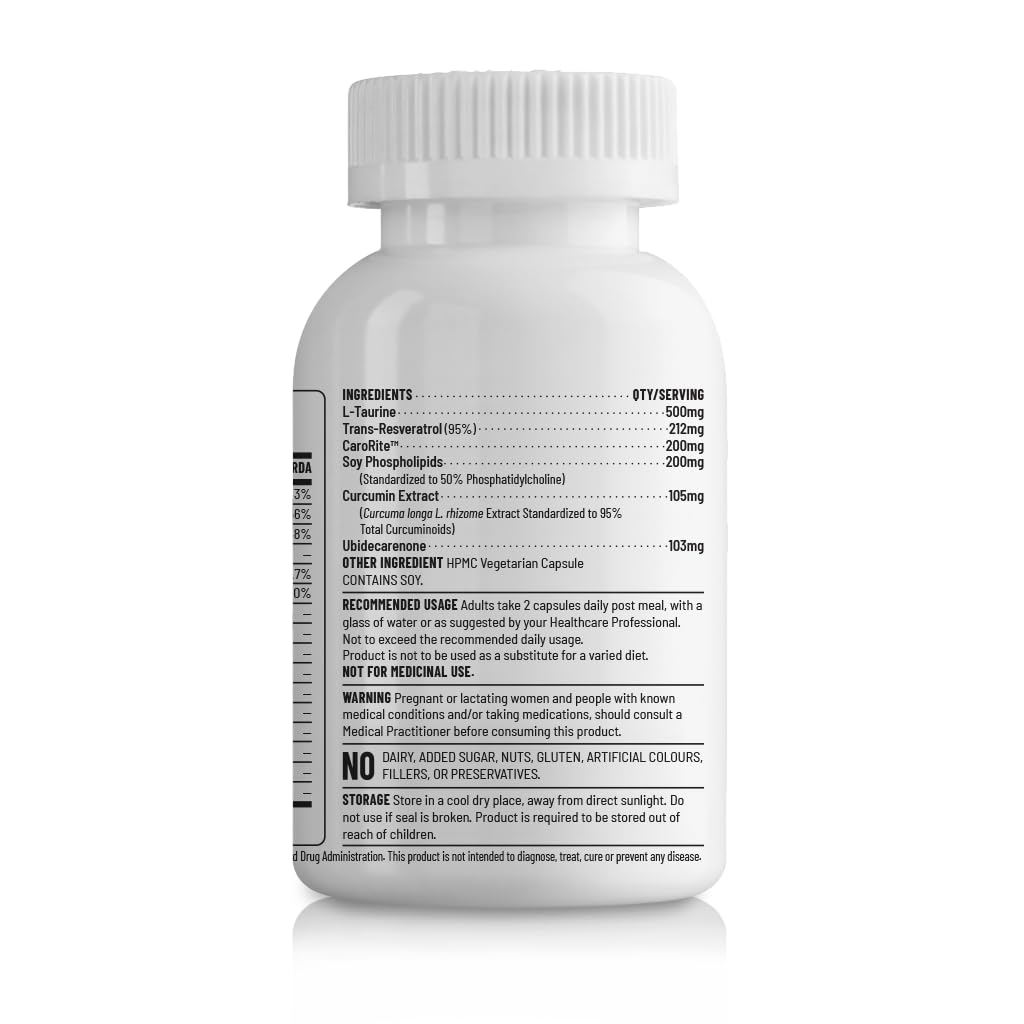 Advanced Nutrients formulation specifically targets the nutritional needs of middle-aged adults to support their overall well-being and promote healthy aging. This comprehensive formula not only focuses on cognition and energy levels but also addresses the cellular and internal factors associated with aging. It contains Carorite (Carotenoid complex) Coenzyme Q10 Curcumin Trans-resveratrol Choline & L-taurine. This advanced formula supports healthy aging & maintains overall well-being. The ingredients in the formulation contribute to reducing oxidative stress & inflammation and support eye cognitive and cellular health.