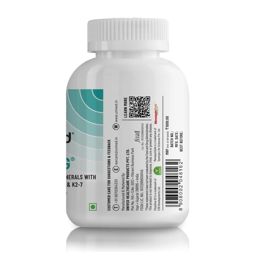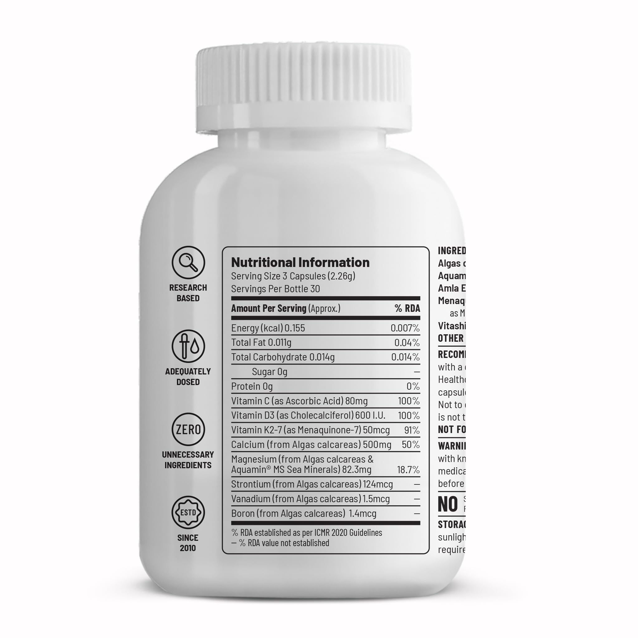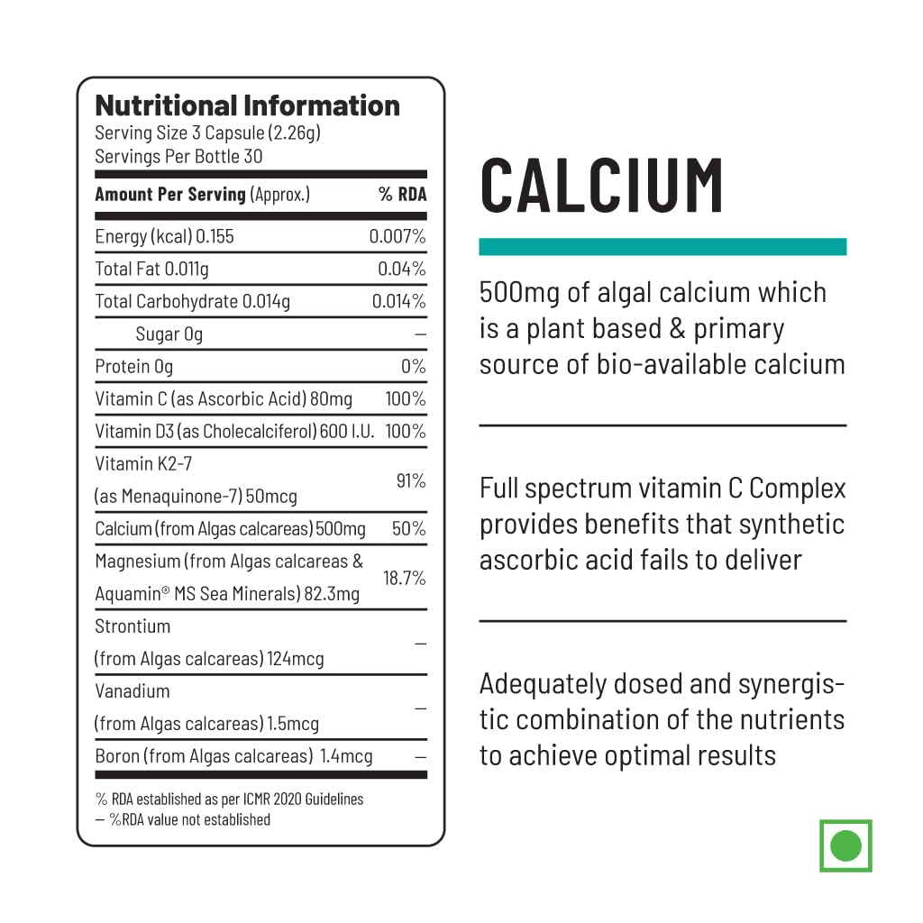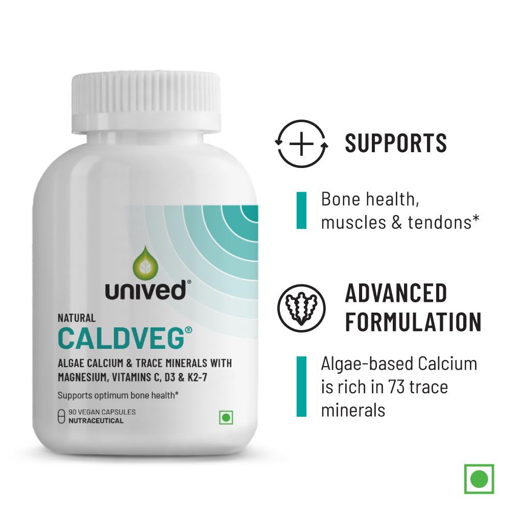 CalDveg is a 100% natural high absorption formula to keep bones strong and healthy; It's formulated with 500mg Algae calcium 82mg Algae Magnesium 80mg plant-based Vitamin C 600 I.U. plant-based Vitamin D3 & 50mcg natural Vitamin K2-7 for optimum bone health and healthy bone ageing; Essential for individuals suffering from osteoporosis and low bone density Suitable for vegetarians;