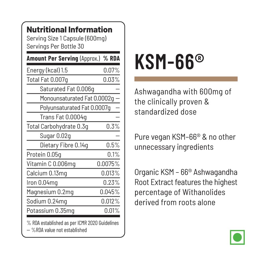 Unived’s KSM-66 Ashwagandha Root Extract contains 600mg Vegan Ashwagandha standardized to >5% Withanolides by HPLC.