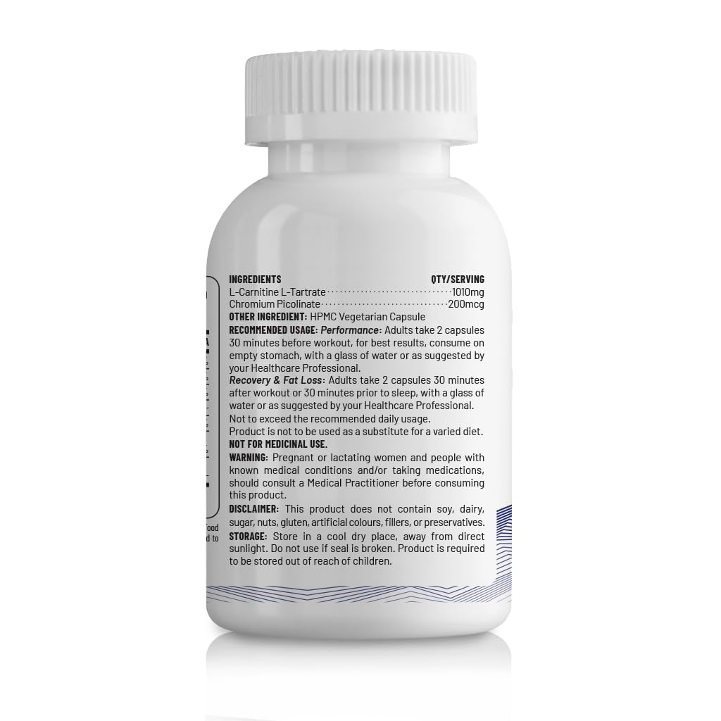 1000mg: Our L- L-Carnitine L-Tartrate delivers 1000mg per serving to ensure maximum potency and effectiveness. Along with 100mg Chromium Picolinate for offer complementary benefits for individuals looking to support their metabolism energy levels muscle h