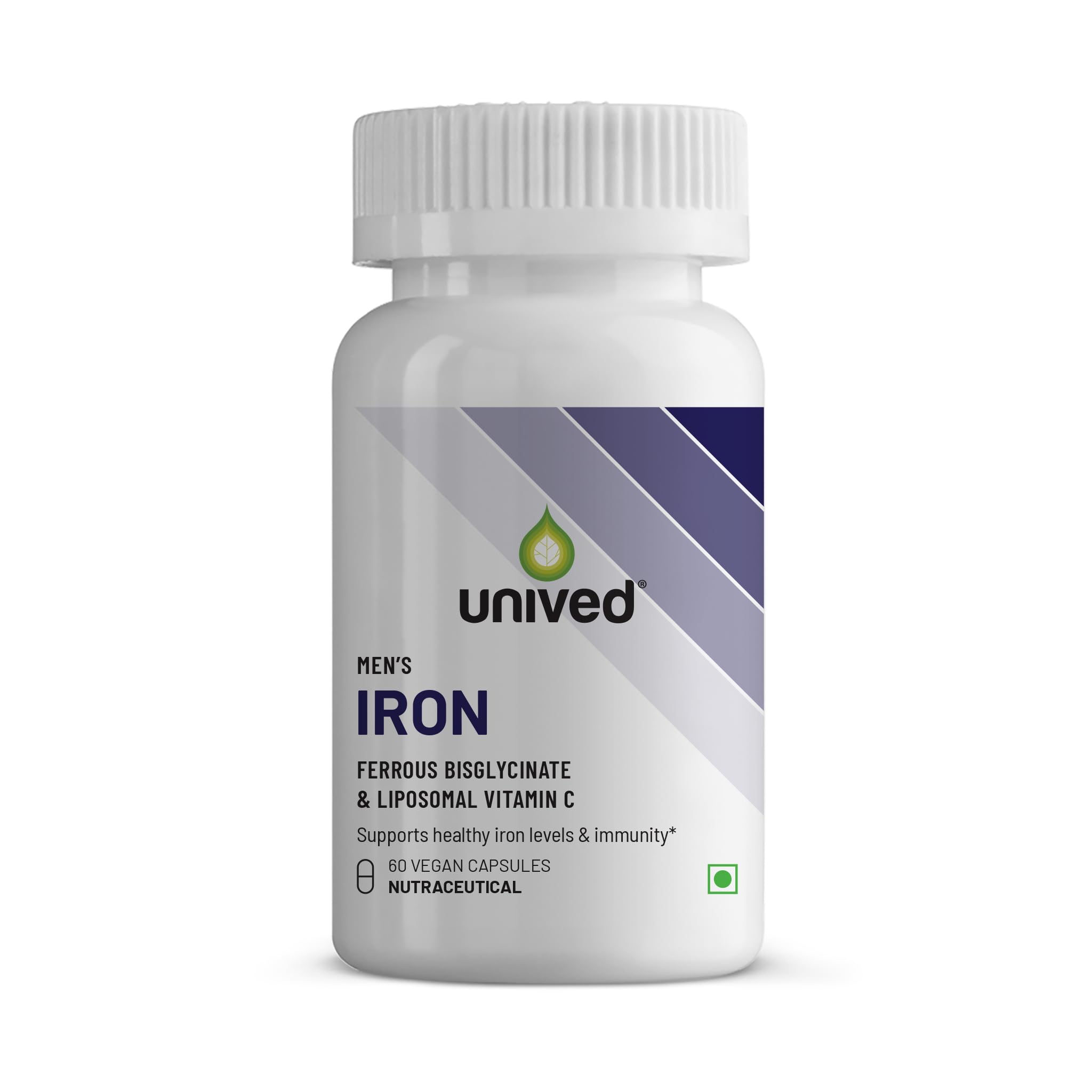 Unived Men’s Iron is a bioavailable iron supplement designed to support daily iron intake energy levels and red blood cell production. With 100% RDA of iron and vitamin C per capsule it offers superior absorption using Ferrous Bisglycinate and Liposomal Vitamin C—ideal for men seeking effective gentle iron support.