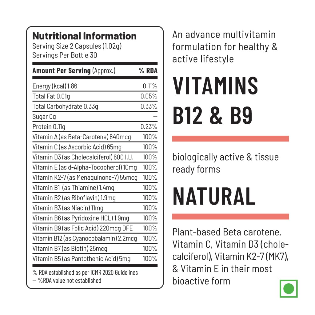 Bio-Available: Natural forms of vitamins are more bio-available and smaller dose gets completely absorbed and utilized leading to positive long-term health benefits.