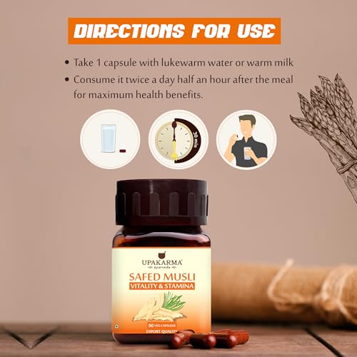 UPAKARMA Safed Musli Capsules (500 mg) | Stamina & Vitality Booster for Men | 90 Veg Capsules - Pack of 1