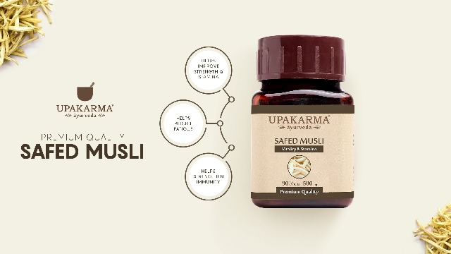 • Pure and Natural – Safed Musli Capsules by Upakarma Ayurveda is a unique ayurvedic formulation made from pure Safed Musli extract. It is a rare ayurvedic herb mainly found in India to provide relief from various health problems such as low energy levels
