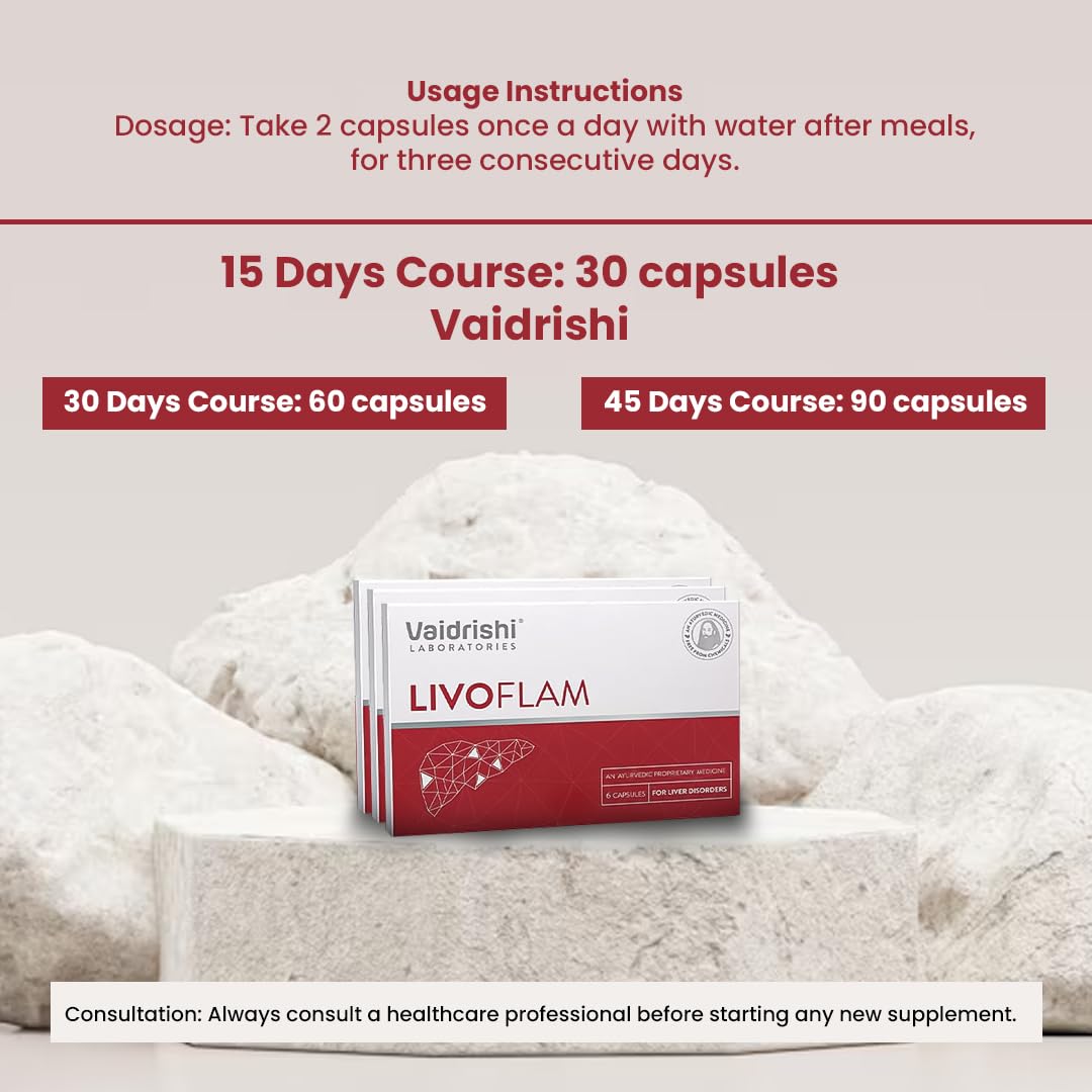 Vaidrishi Digestive Food Supplement Capsules For Fatty Liver With Livoflam | Herbal Protection | Pack of 1