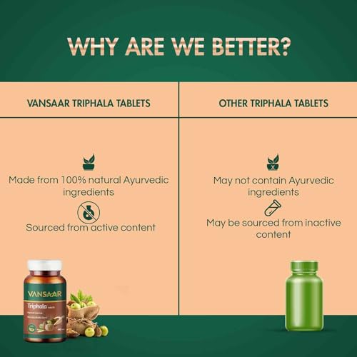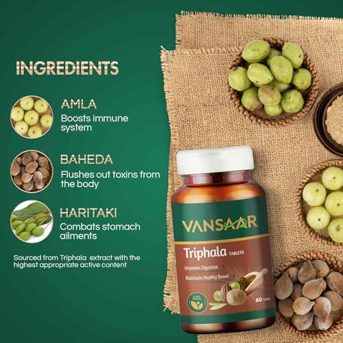 • 100 % Ayurvedic Ingredients: Vansaar Triphala Tablets contains 100% pure & natural triphala extracts with the most appropriate active content. Triphala is a powerful herb that effectively tackles digestive imbalances and relieving digestive problems there